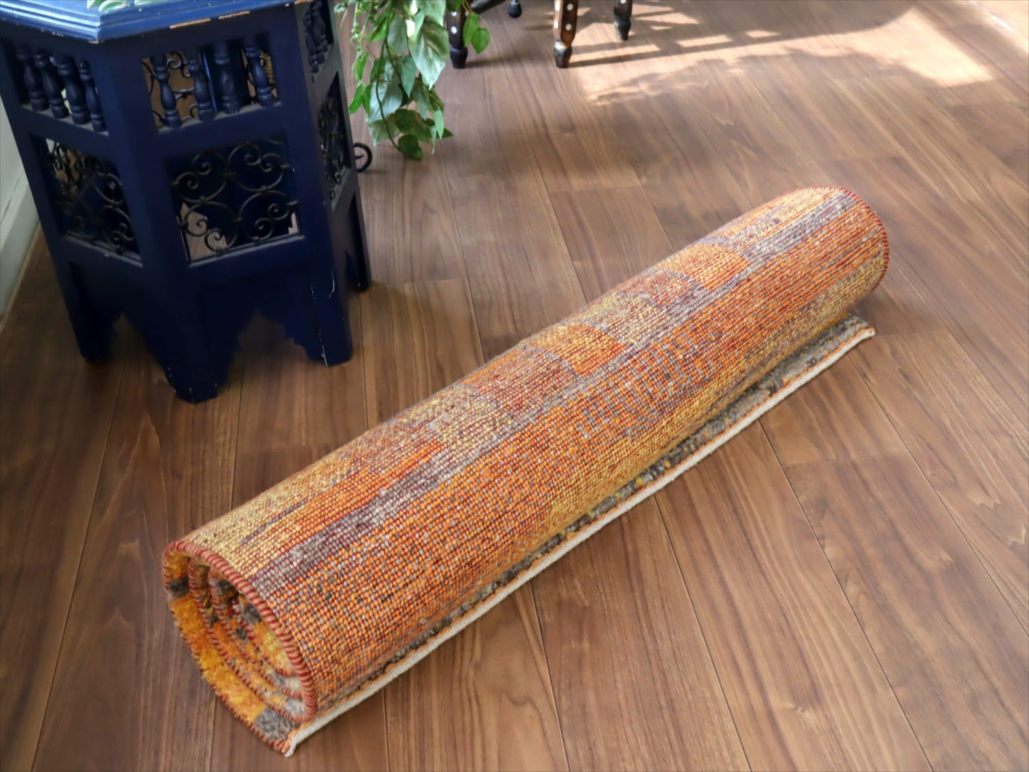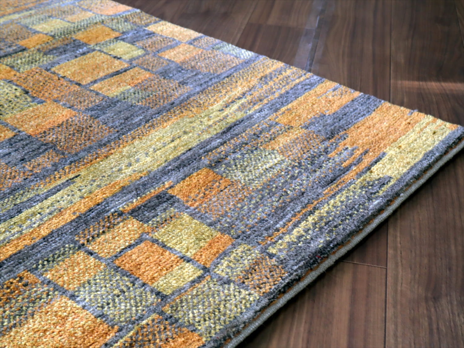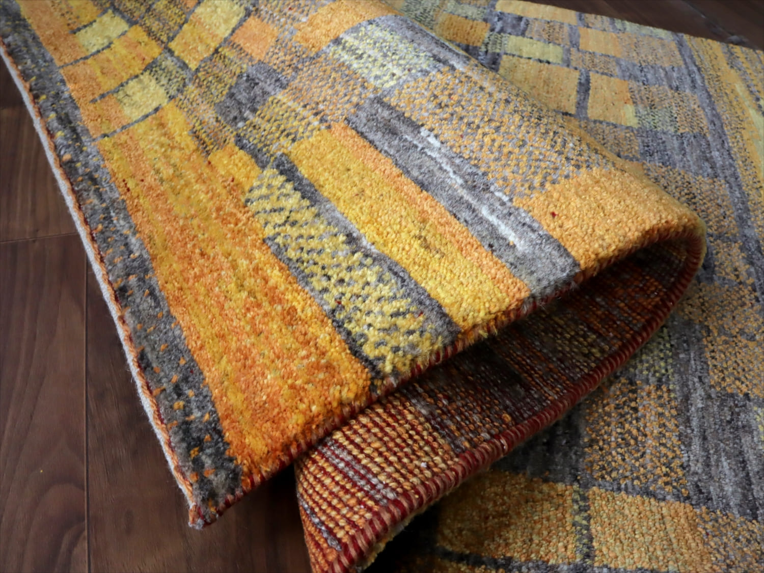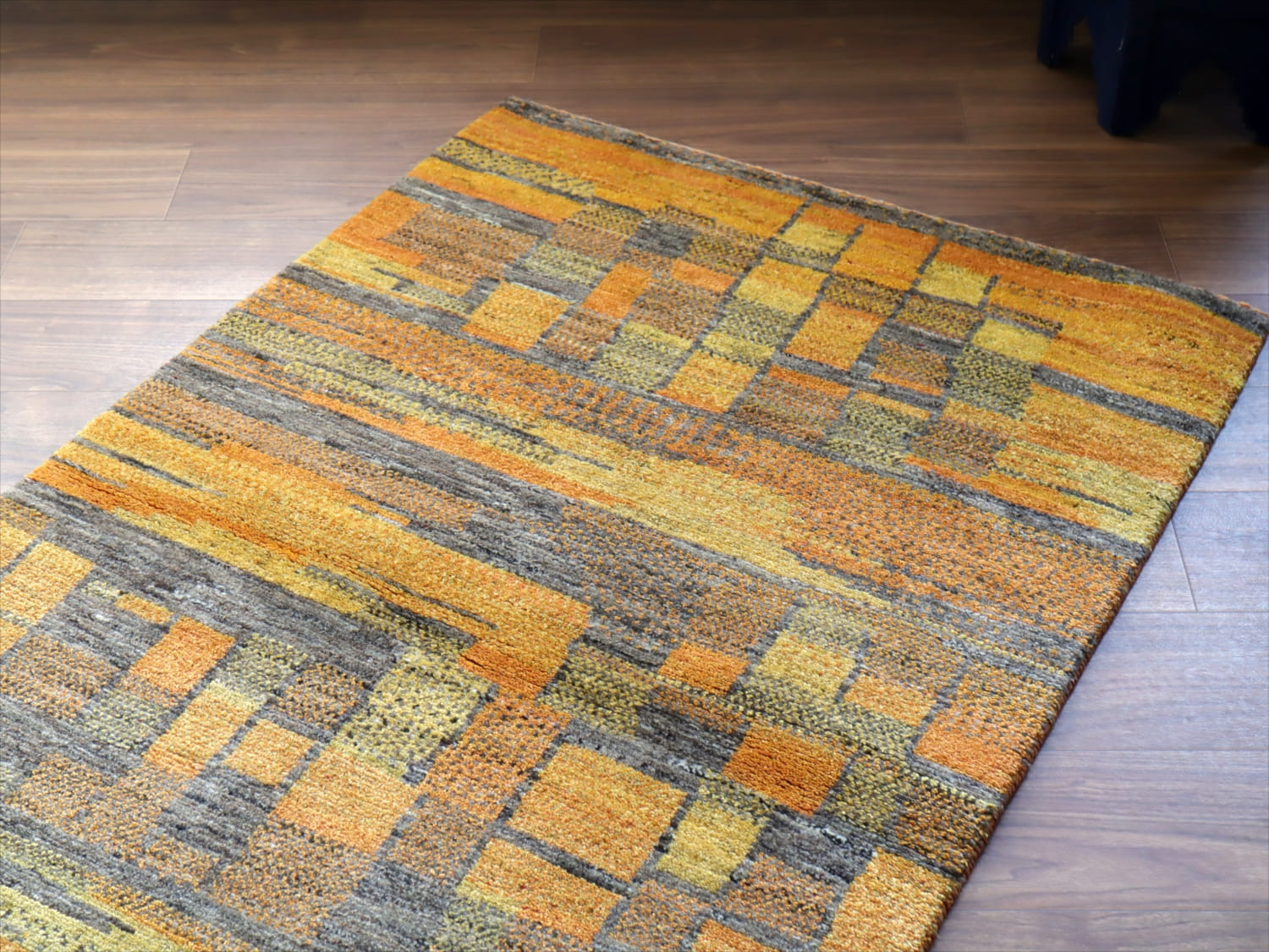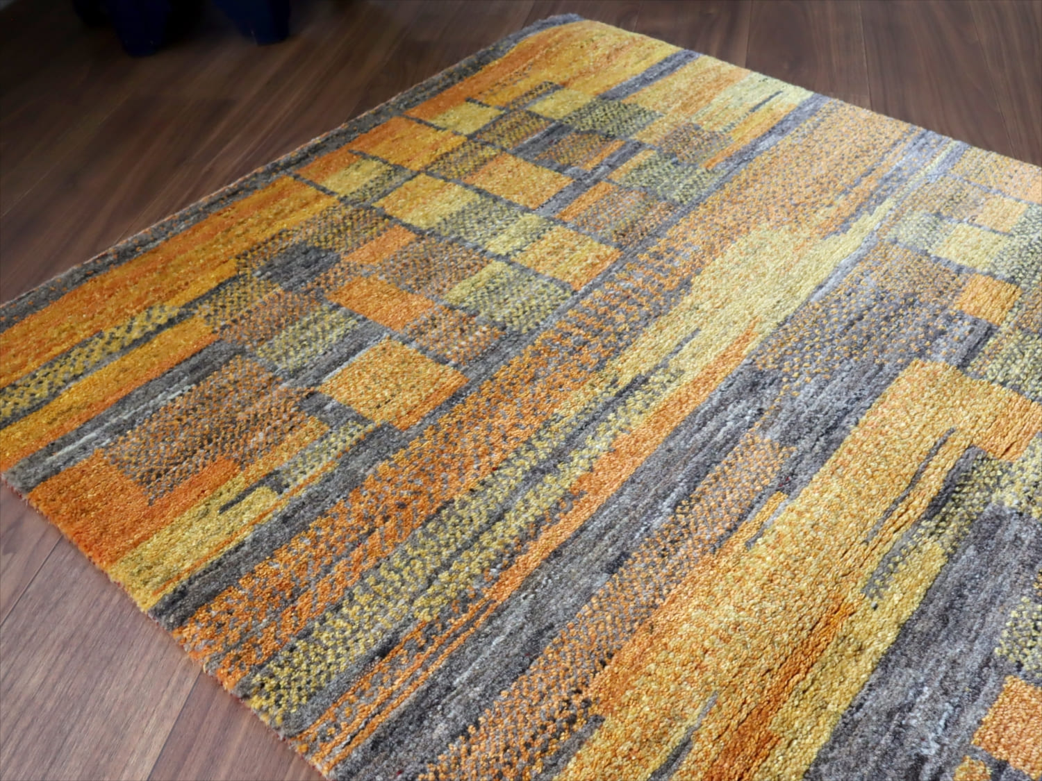 ギャッベ ノマド 150x93cm オレンジ ブルー 抽象画のような幾何学デザイン