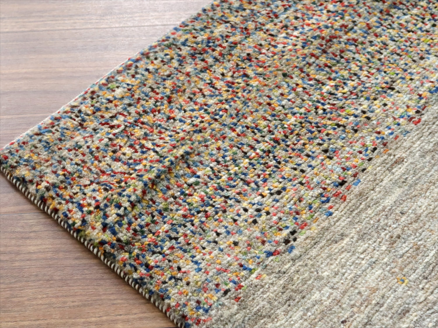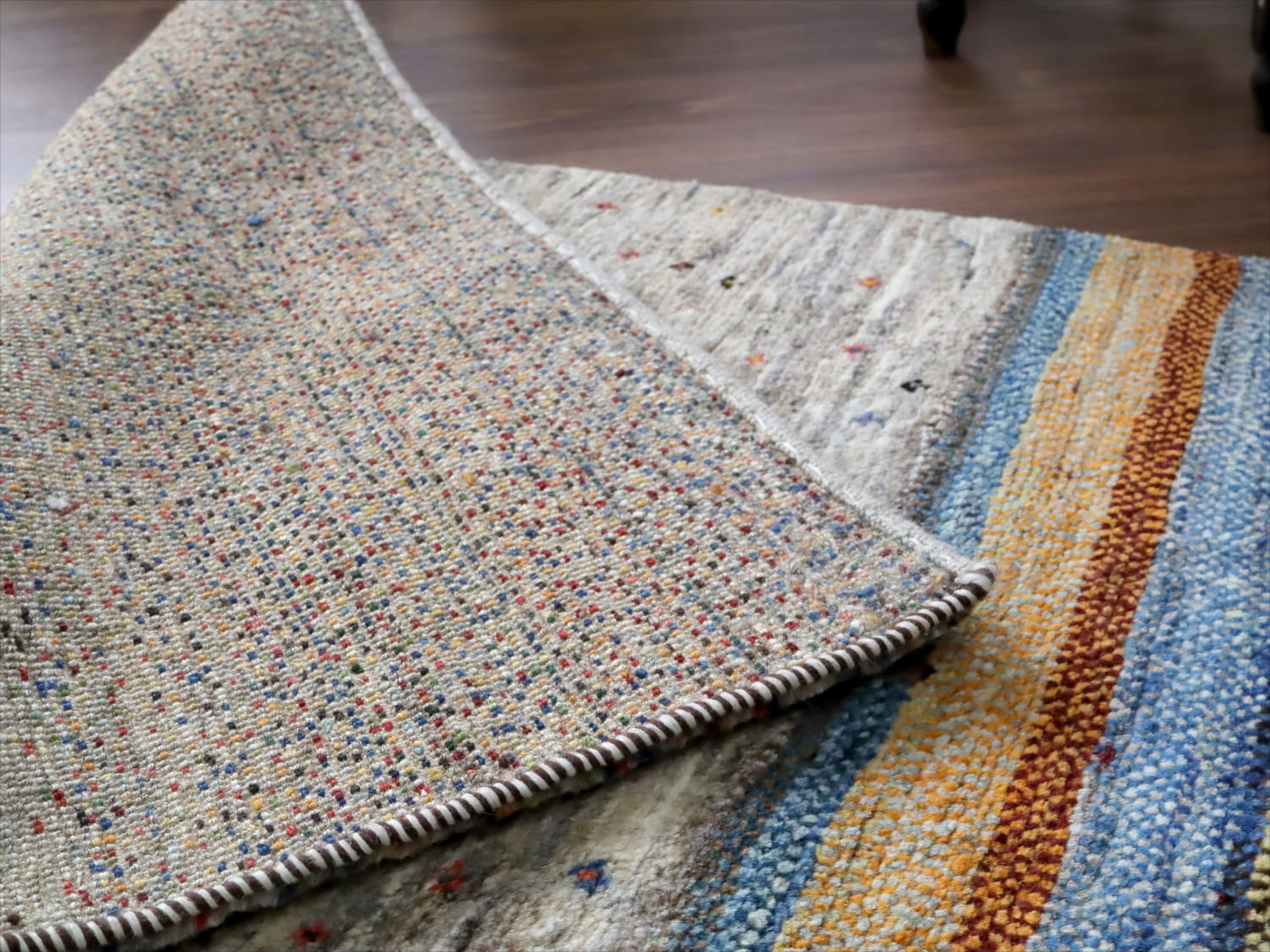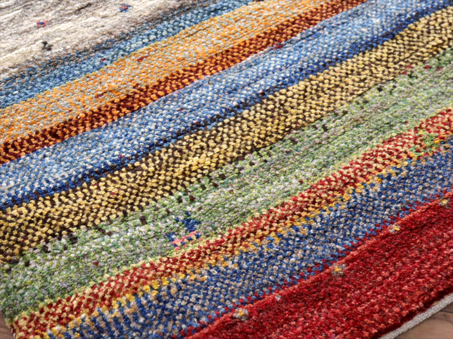 【ギャッベ・ノマド - Gabbeh Nomad -】遊牧民を意味するノマドと名付けられたギャッベ・コレクション。元来、ギャッベとは、毛足の長いラグを意味し、このクラスの織りの織物のことをいいます。ふかふかした厚みがあります。じゅうたんの結び目は10cmの間に20~25目ほどで、ギャッベの中で最もベーシックな織りのグレードです。デザインは、遊牧民本来の自由な感性や、長く織り継がれてきた伝統を生かしたものが多く、シンプルな単色のものからカラフルなタイル柄など、様々なデザインが織られています。ヤギやヒツジなどの動物、生命の樹などの定番モチーフが織り込まれていることが多く、一般的にイメージされる「ギャッベらしさ」が一番感じられるスタンダードなクラスです。