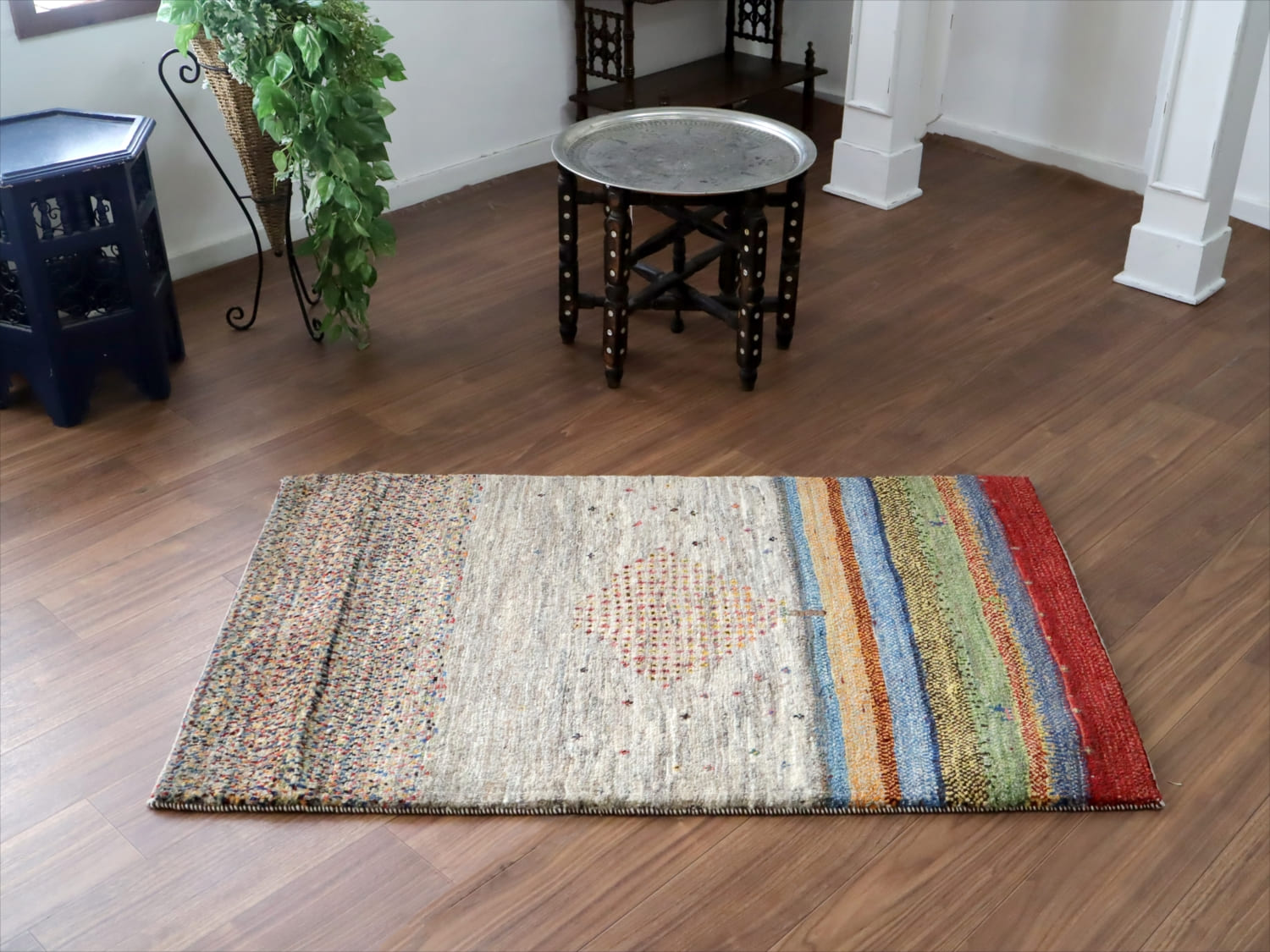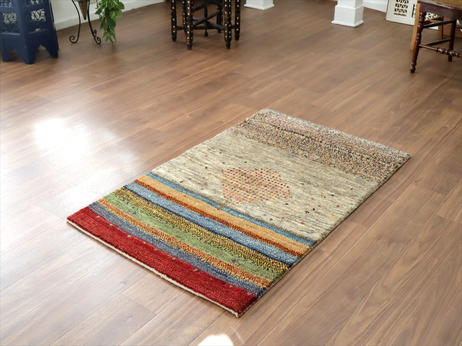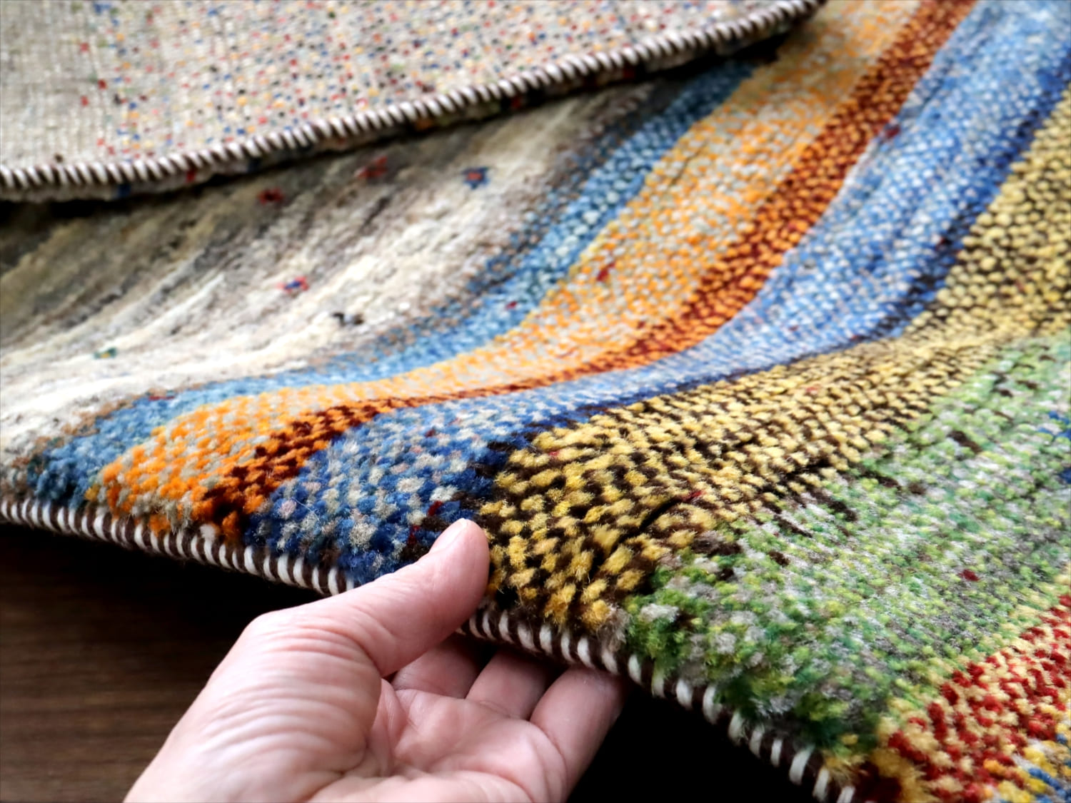 ・手紡ぎ、草木染(または無染色)、ウール100%、手織りのギャッベ。