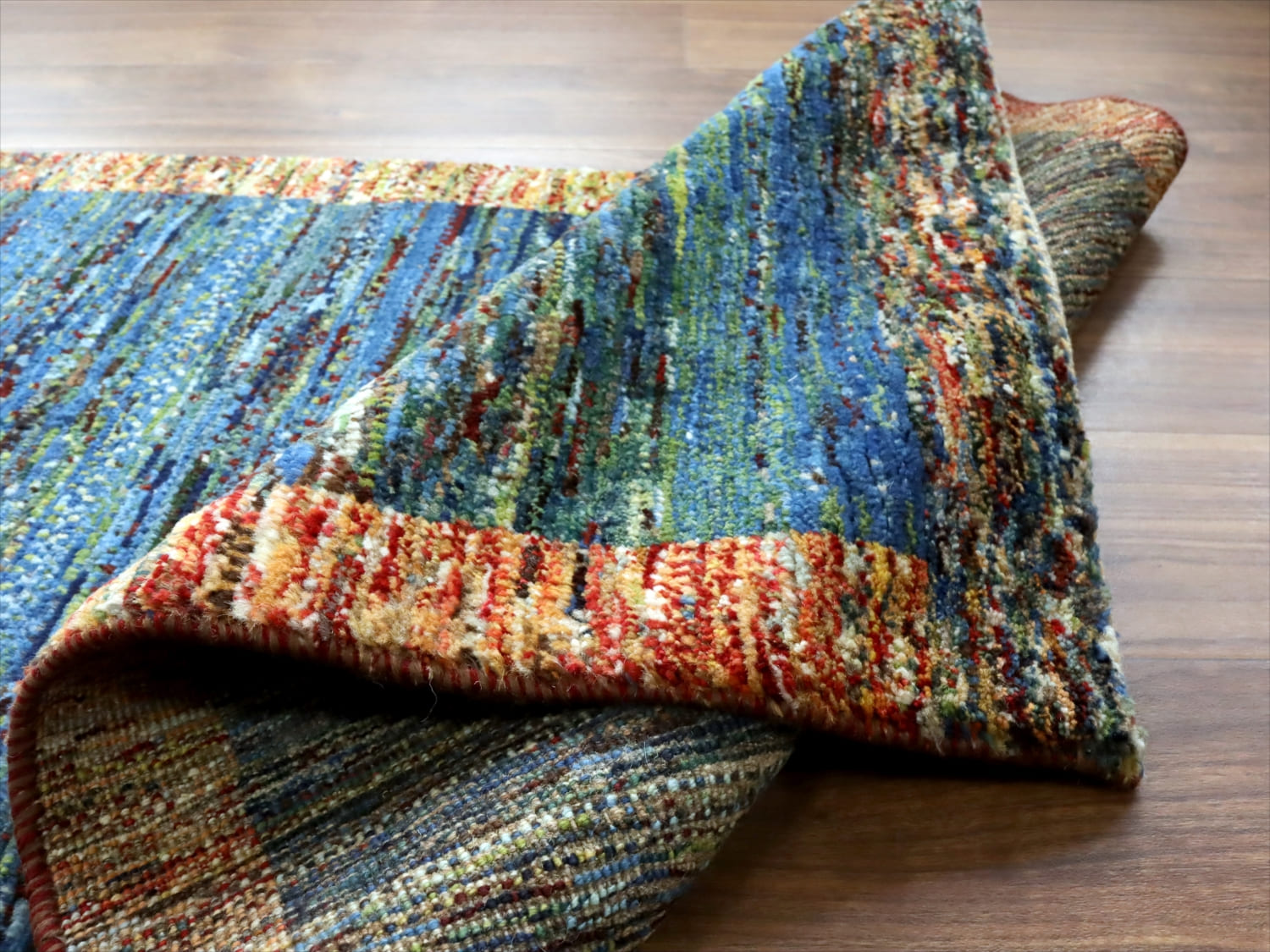 - ギャッベ ノマド 129x72cm ブルーグリーン ドットミックス
