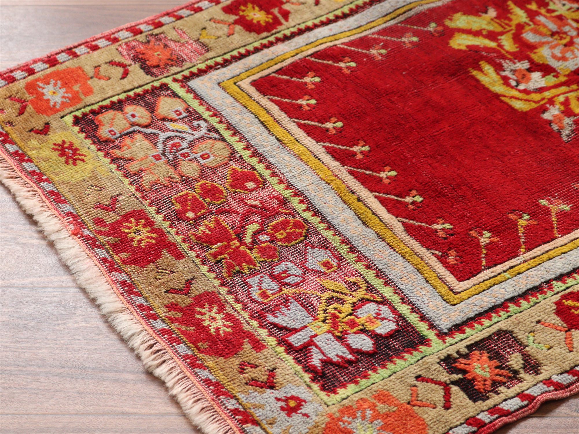 トルコ絨毯 赤いミフラープ106×69cm フラワーデザイン オールドラグ