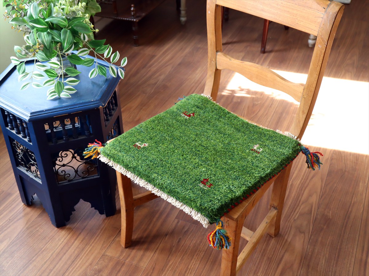 - ギャッベ イラン産手織り 座布団サイズ 39×41cm グリーン 動物モチーフ