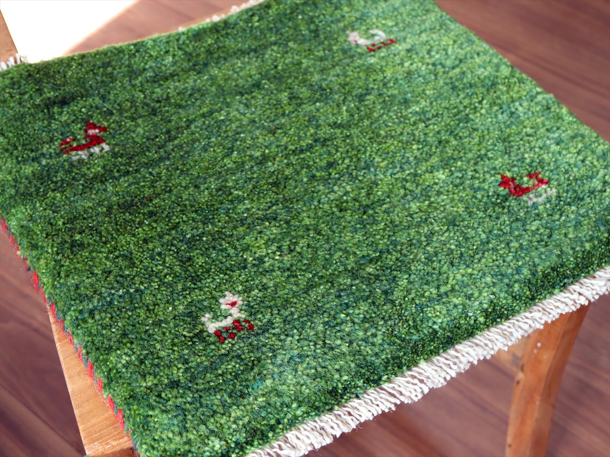 ギャッベ イラン産手織り 座布団サイズ 39×41cm グリーン 動物モチーフ