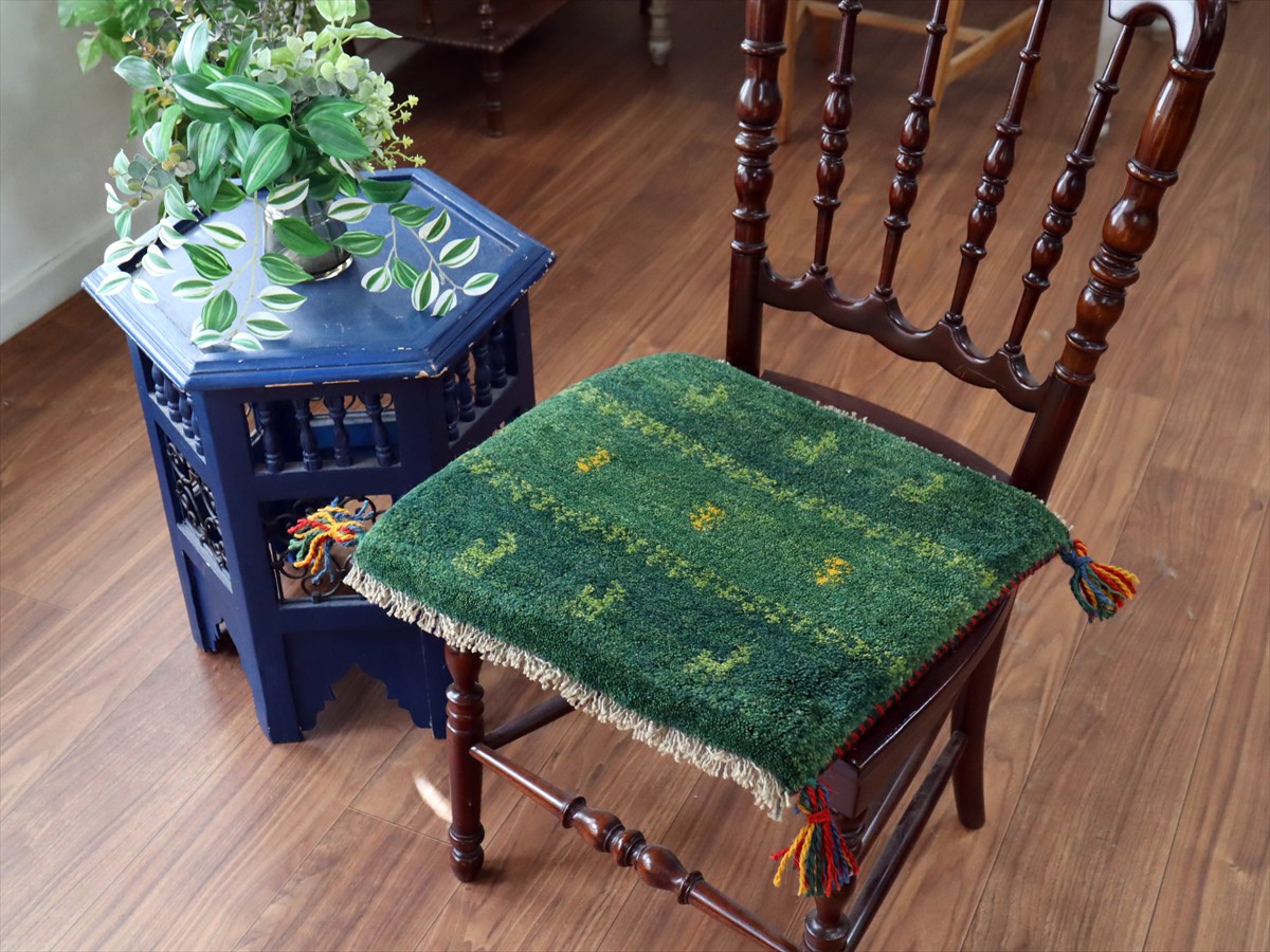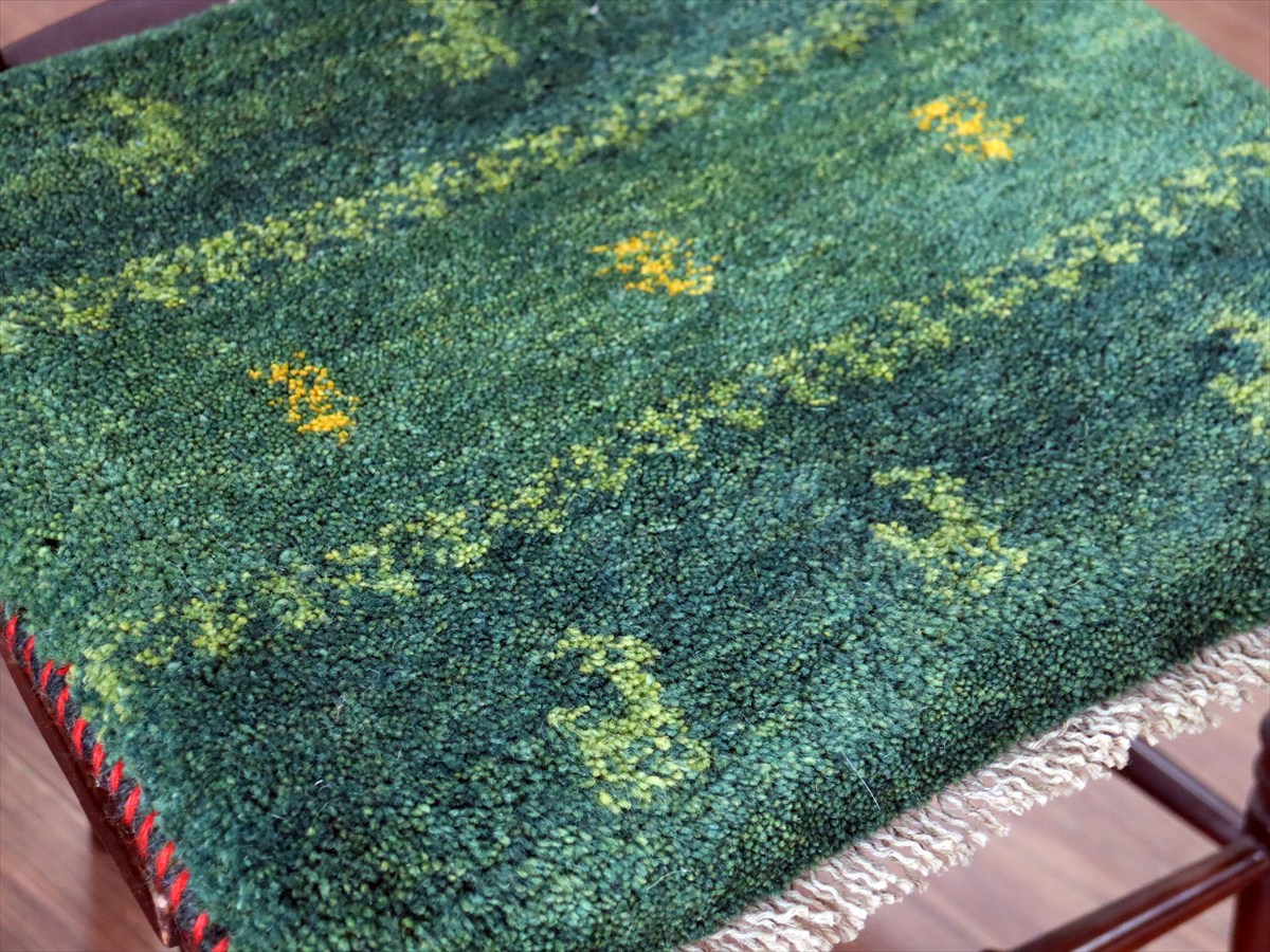 Key:イラン直輸入, GABBEH, ギャッベ, ギャベ, グリーン, 緑, 手織り, 手紡ぎ, ウール, 天然素材, ポンポン, 座布団, バザールギャッベ, ハンドメイド, 一点もの, 現品販売,ガラタバザール, 東京中野区