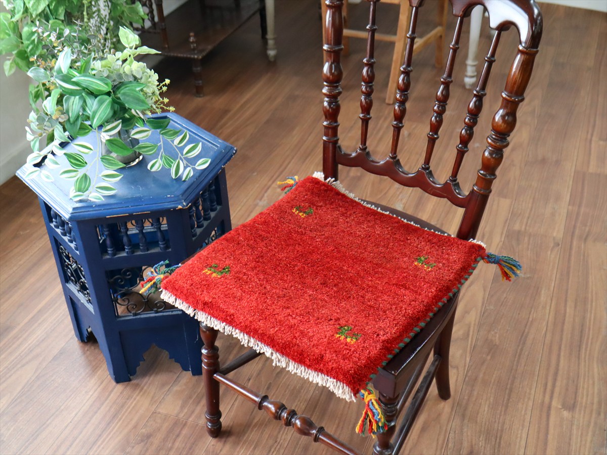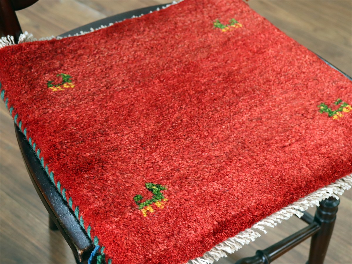 - ギャッベ イラン産手織り 座布団サイズ 41×42cm レッド 動物モチーフ