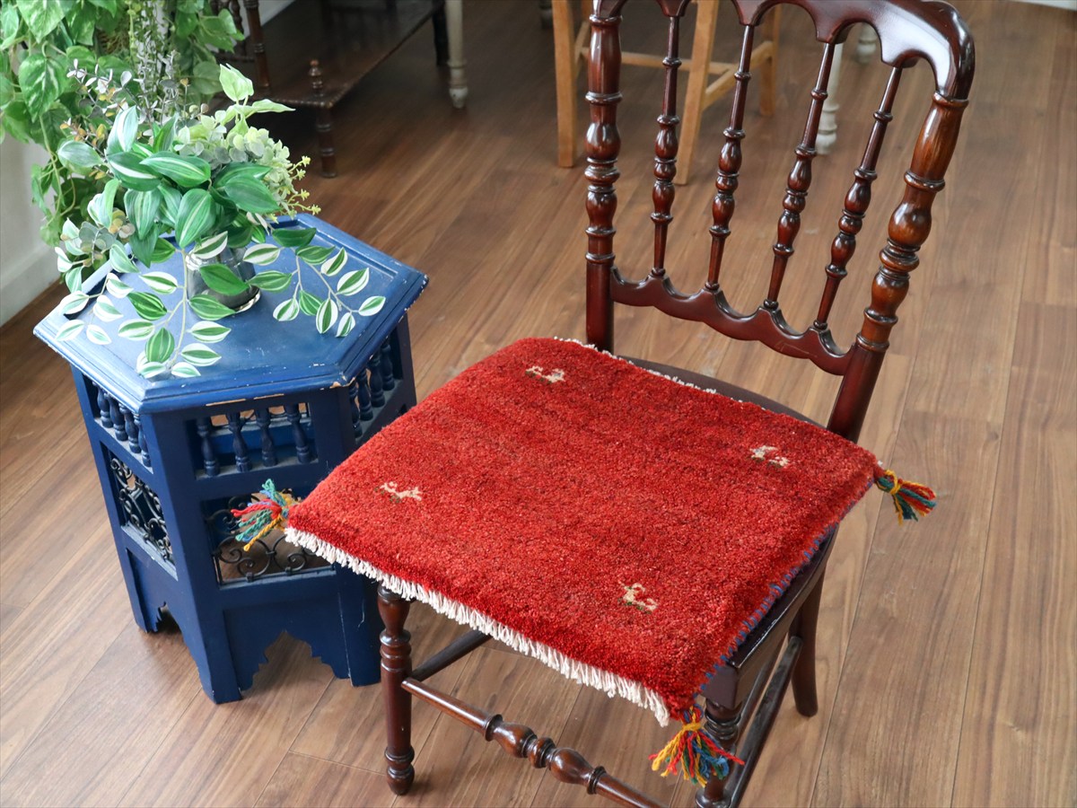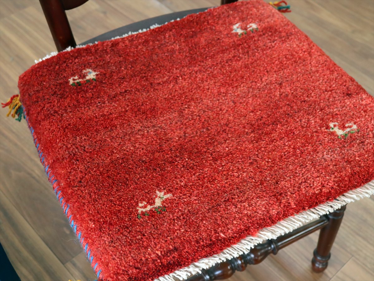 ギャッベ イラン産手織り 座布団サイズ 41×46cm レッド 動物モチーフ