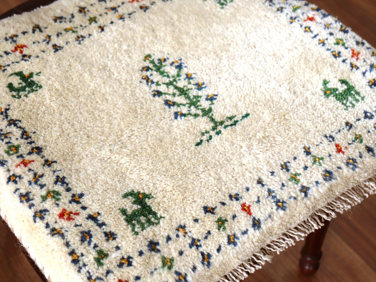 ギャッベ イラン産手織り 座布団サイズ 41×46cm ナチュラルアイボリー 生命の樹と動物