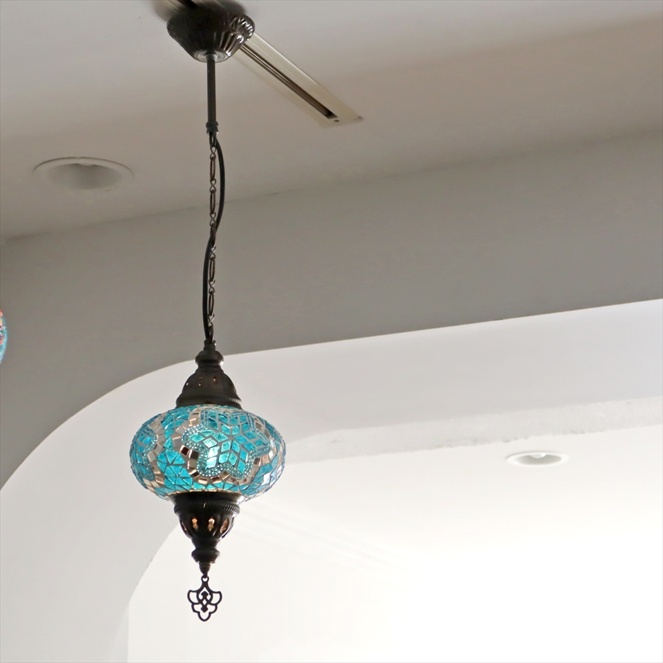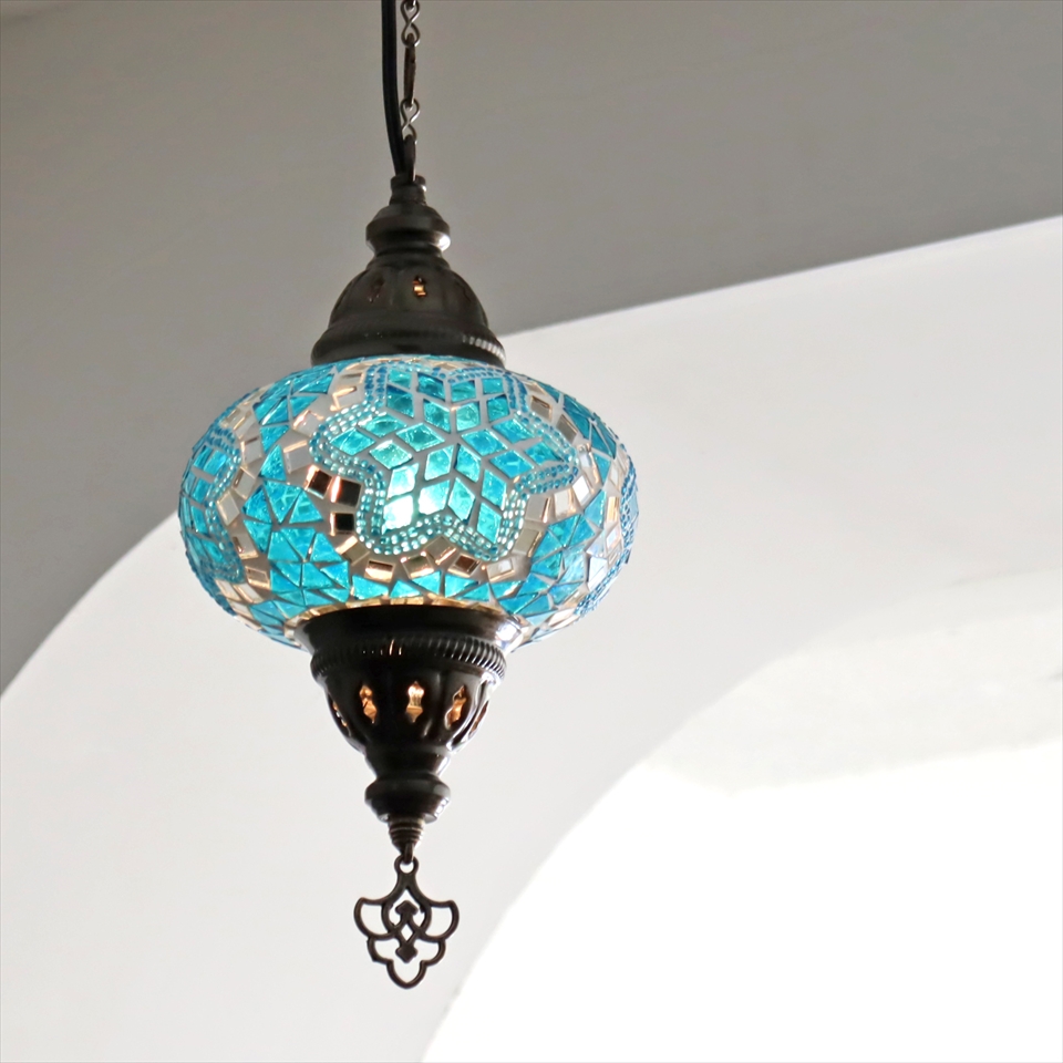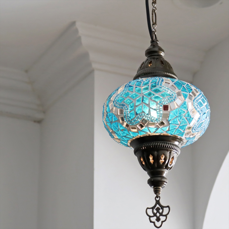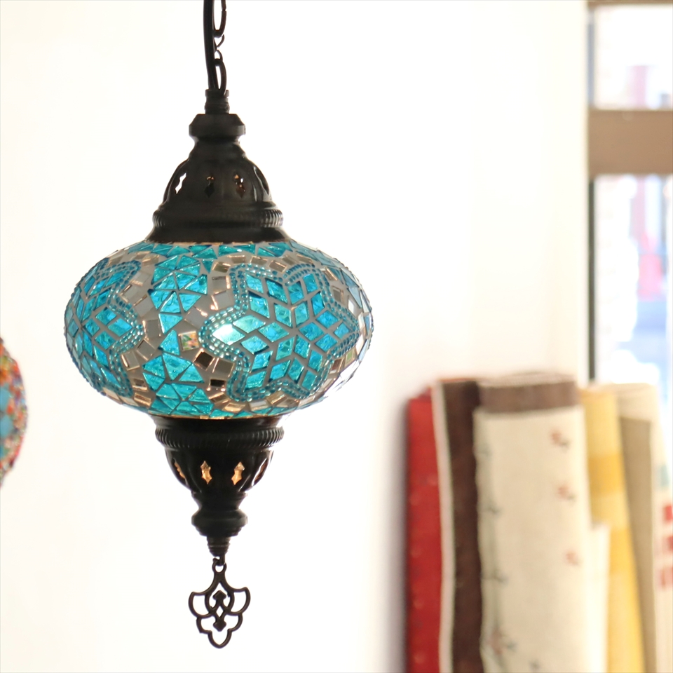 - トルコランプ モザイクランプ ペンダントランプ 直径16cm ターコイズブルー