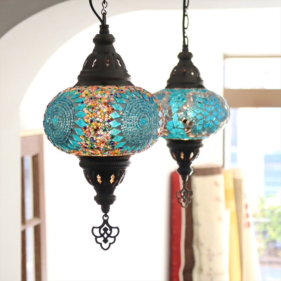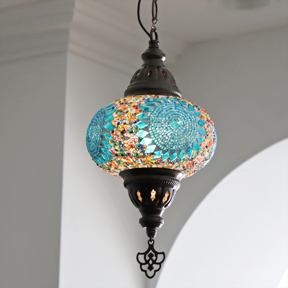 - トルコランプ モザイクランプ ペンダントランプ 直径16cm ブルーサークル