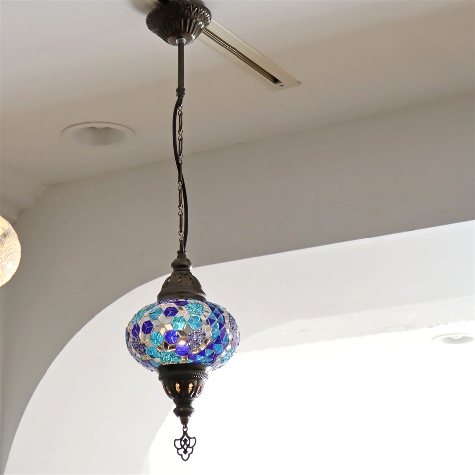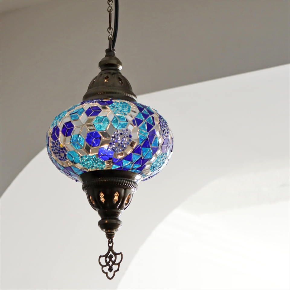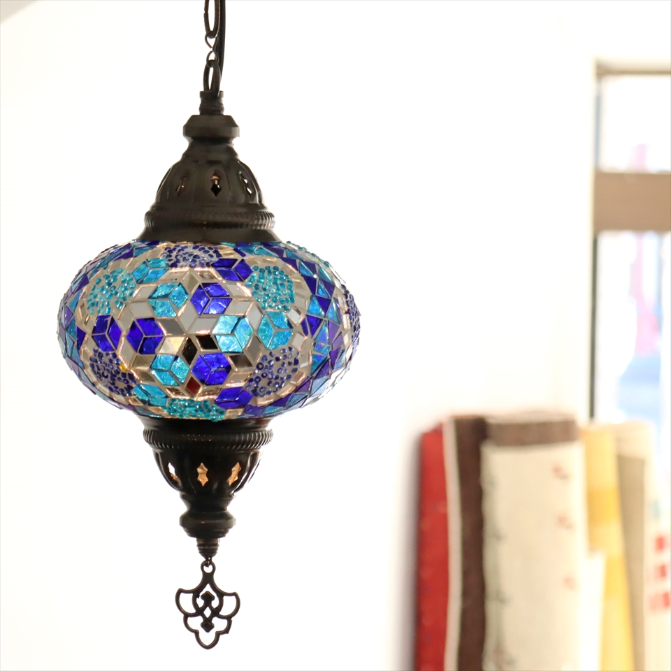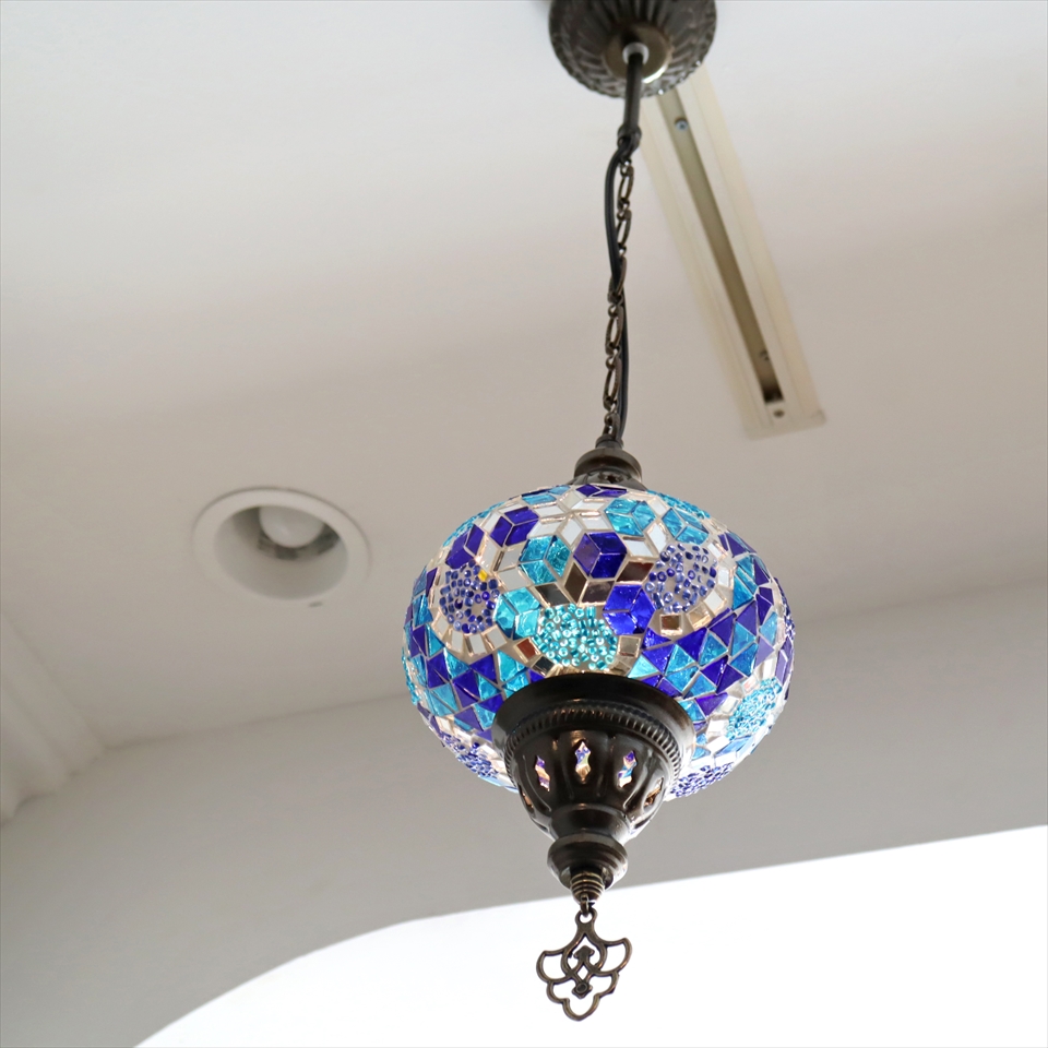 - トルコランプ モザイクランプ ペンダントランプ 直径16cm ブルー
