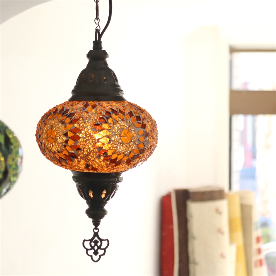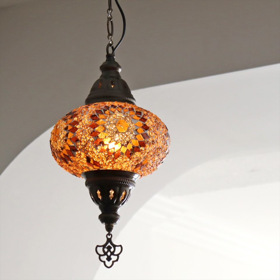 - トルコランプ モザイクランプ ペンダントランプ 直径16cm アンバー