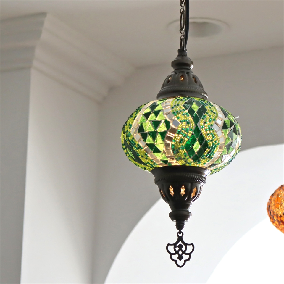 - トルコランプ モザイクランプ ペンダントランプ 直径16cm グリーン