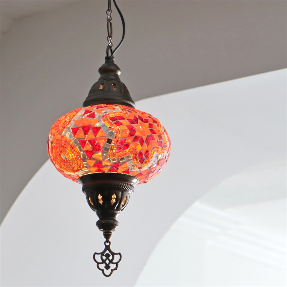 トルコランプ モザイクランプ ペンダントランプ 直径16cm オレンジ