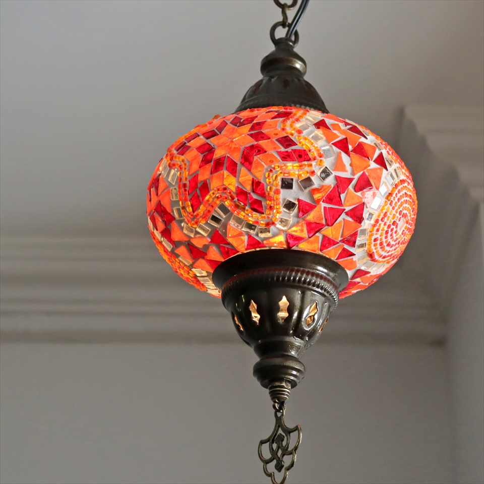 6. トルコランプ モザイクランプ ペンダントランプ 直径16cm オレンジ