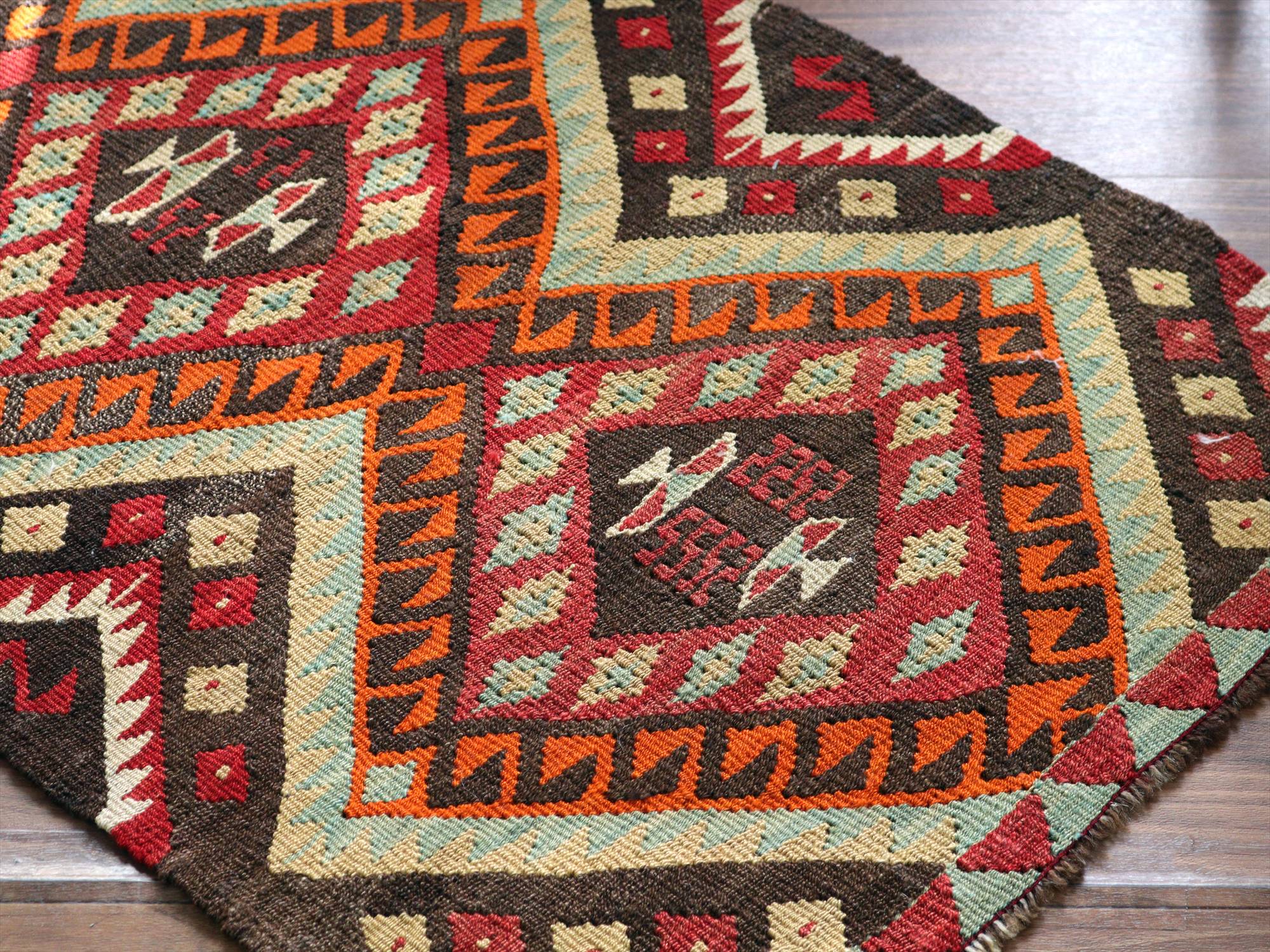 - オールドキリム シワス90×64cm ヤストゥク 連なるドラゴン ブラウン