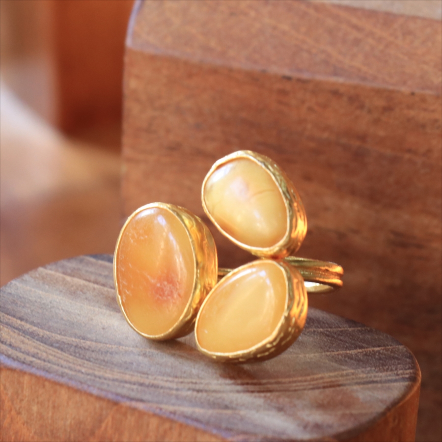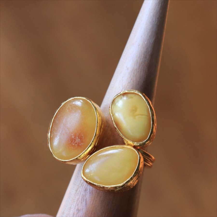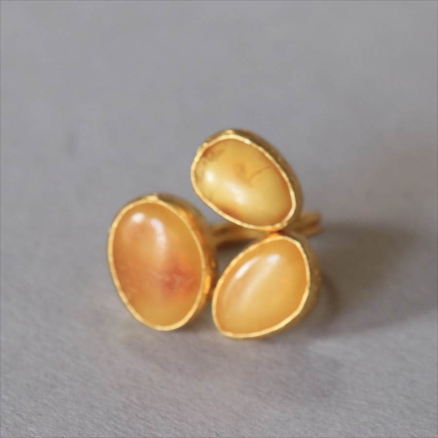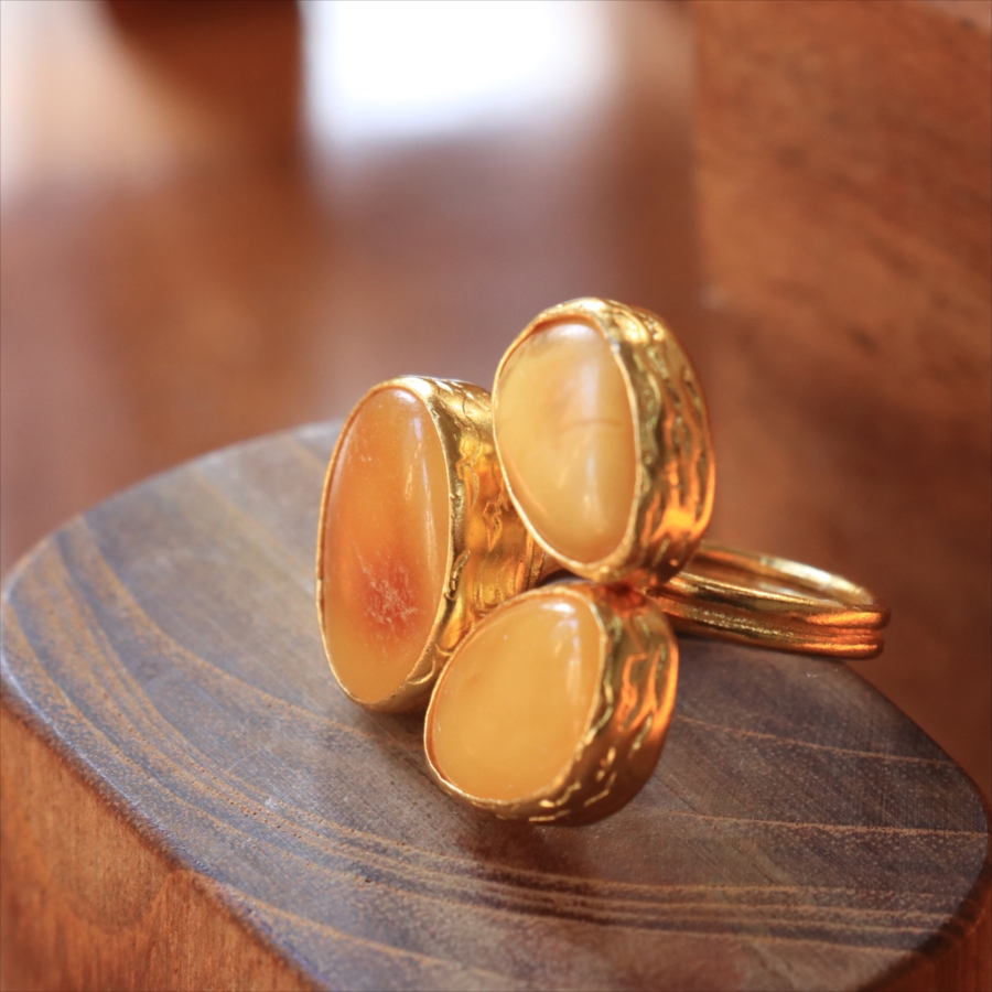 琥珀 アンバー3ストーンリング 22KGP アルサメイア トルコジュエリー 3つの石