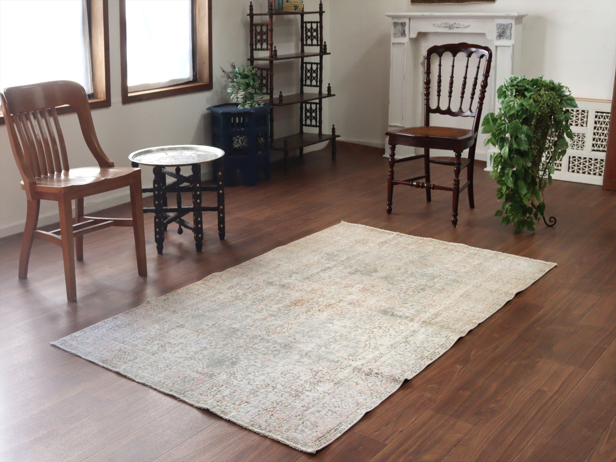 key:Antique Rug, Recyle rug, reclamation rug, vintage, Turkish Carpet, Vintage wash, Bleach, Hand knotted, Pure wool, BO-HO, Moroccan Interior, トライバルラグ, トルコ絨毯, オーバーダイド, 後染め, リサイクルラグ, リクラメーション, エリアラグ, 手織り, じゅうたん, ヴィンテージ, アンティークラグ, パステル, シャビーシック, 店舗什器, 店舗用, アパレルショップ, ラグ