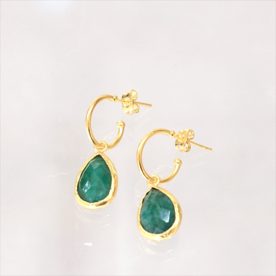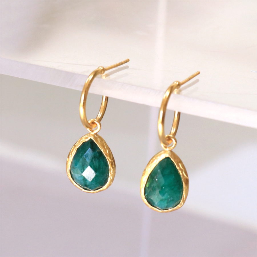 5. アルサメイア フープ ピアス 揺れるドロップ形 エメラルド