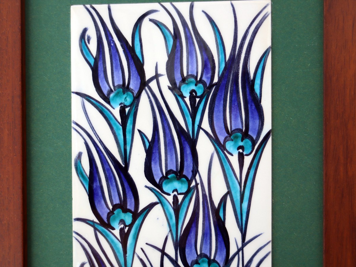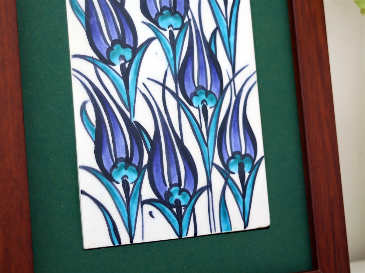 手書きタイル トルコ陶器 ミニタイル1枚額 H29×W19×D1.5cm ブルーチューリップ Turkish Hand Paint Tile