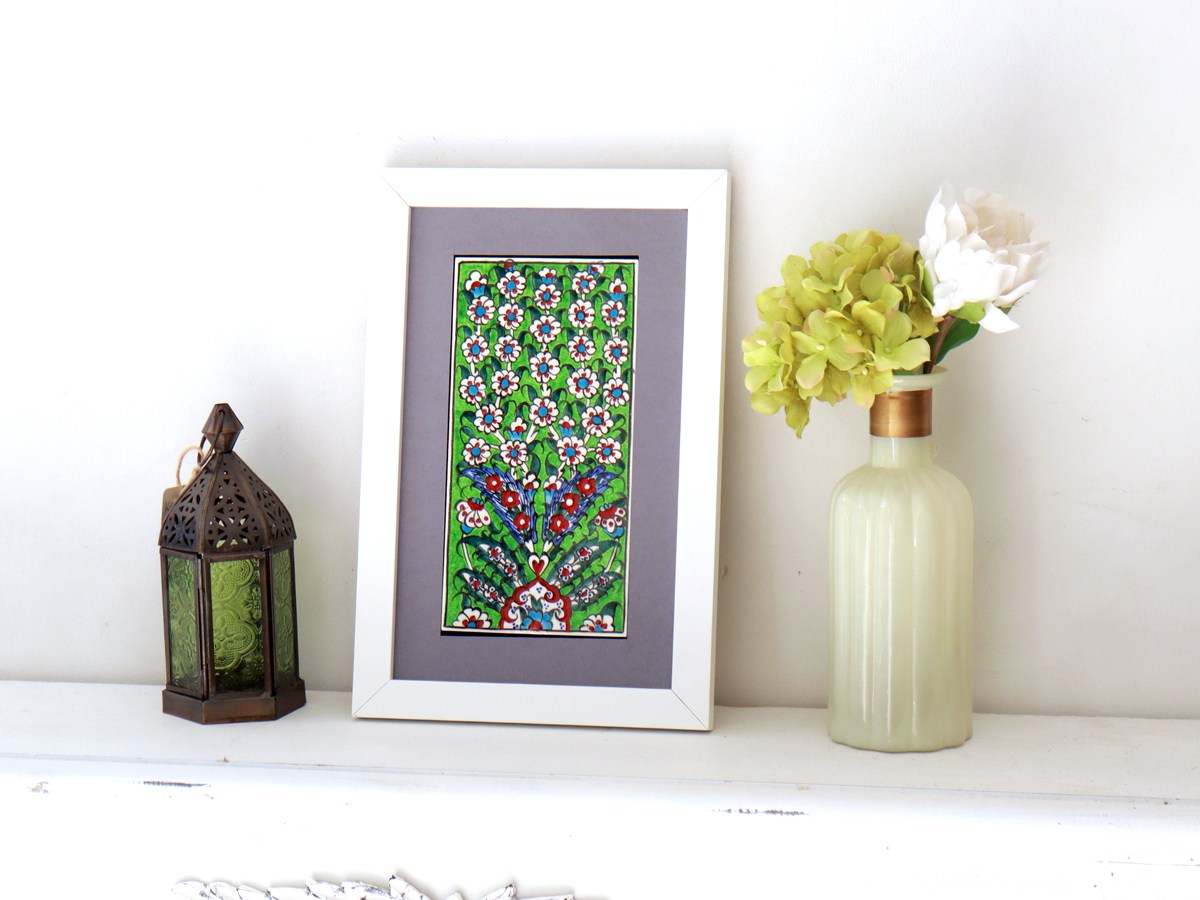手書きタイル トルコ陶器 ミニタイル1枚額 H29×W19×D1.5cm プラムツリー Turkish Hand Paint Tile
