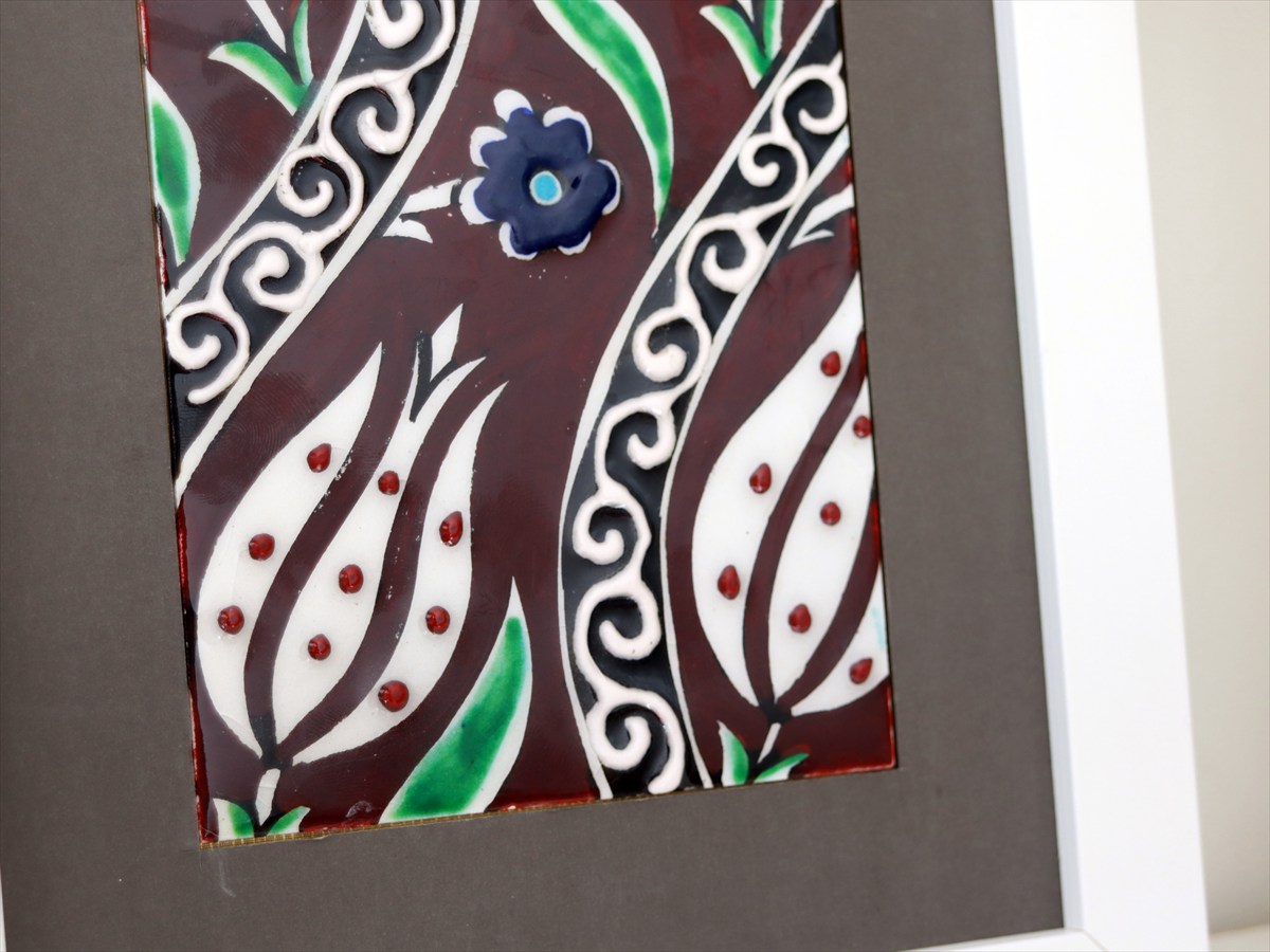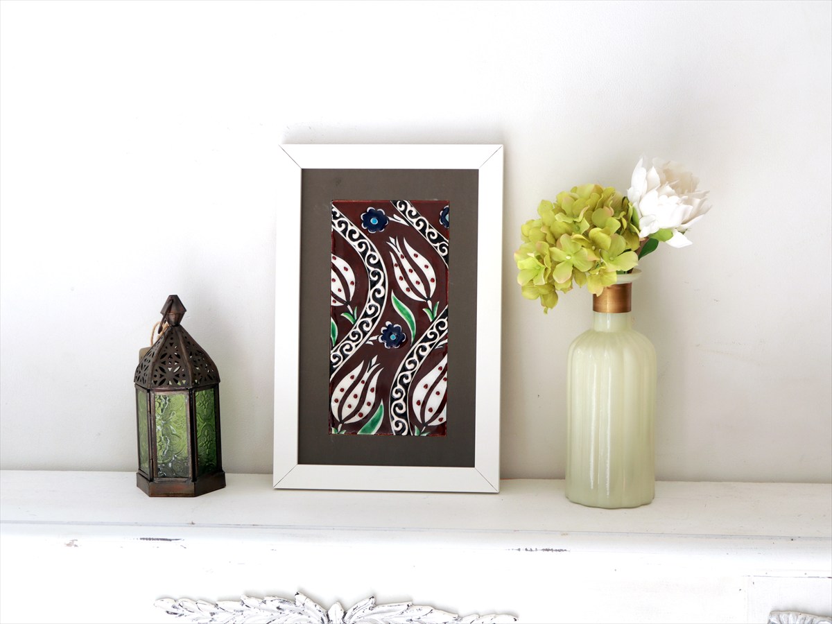 手書きタイル トルコ陶器 ミニタイル1枚額 H29×W19×D1.5cm チューリップ Turkish Hand Paint Tile