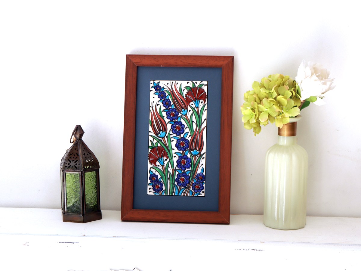 手書きタイル トルコ陶器 ミニタイル1枚額 H29×W19×D1.5cm チューリップ&カーネーション Turkish Hand Paint Tile