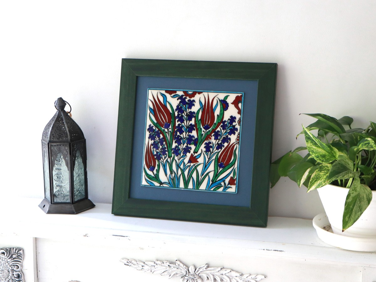 トルコ陶器 手書きタイル 1枚額 H32×W32×D1.5cm チューリップ Turkish Hand Paint Tile