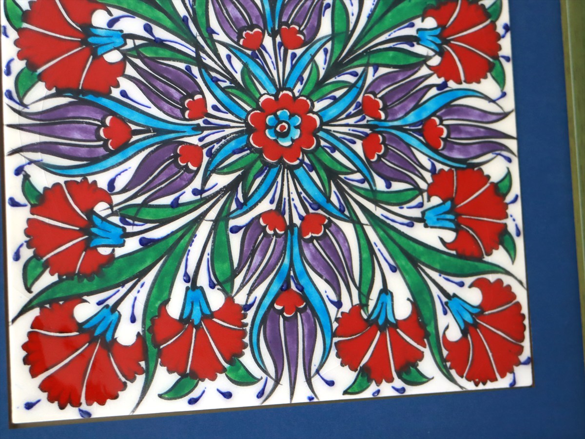 Key:タイル トルコ 陶器 イズニック キュタフヤ 手書き ハンドメイド パネル 額 インテリア 壁 ディスプレイ Iznik Tile Turkish Hand paint Handmade Ottoman Blue Mosque Kutahya