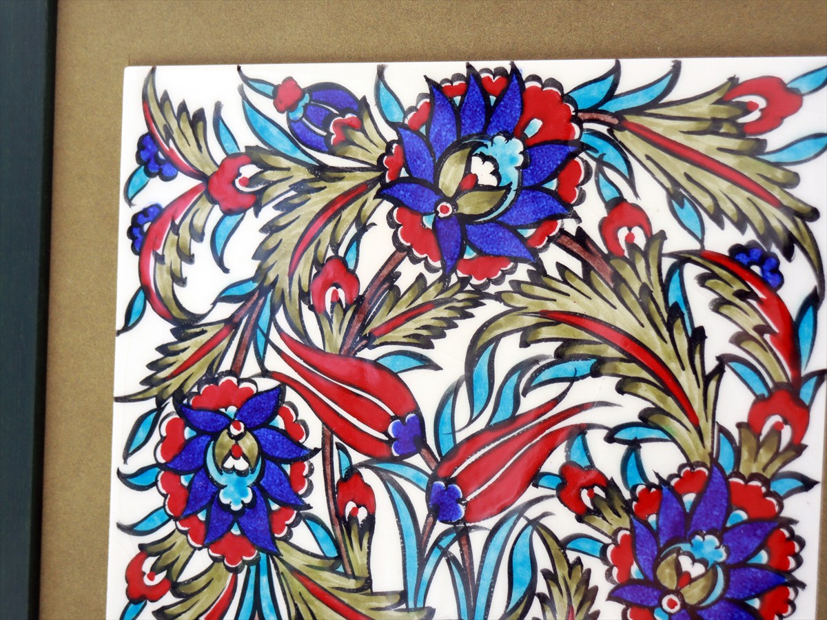 Key:タイル トルコ 陶器 イズニック キュタフヤ 手書き ハンドメイド パネル 額 インテリア 壁 ディスプレイ Iznik Tile Turkish Hand paint Handmade Ottoman Blue Mosque Kutahya