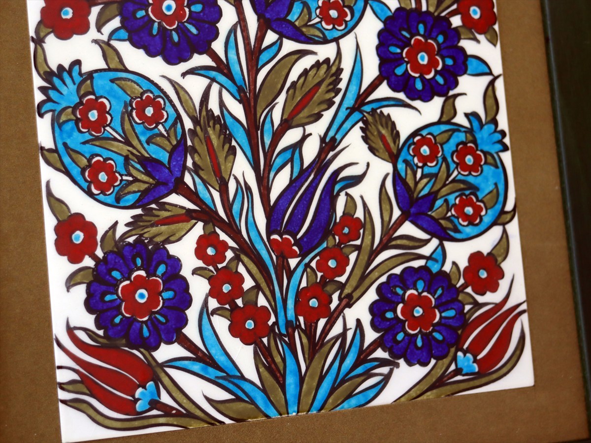 Key:タイル トルコ 陶器 イズニック キュタフヤ 手書き ハンドメイド パネル 額 インテリア 壁 ディスプレイ Iznik Tile Turkish Hand paint Handmade Ottoman Blue Mosque Kutahya