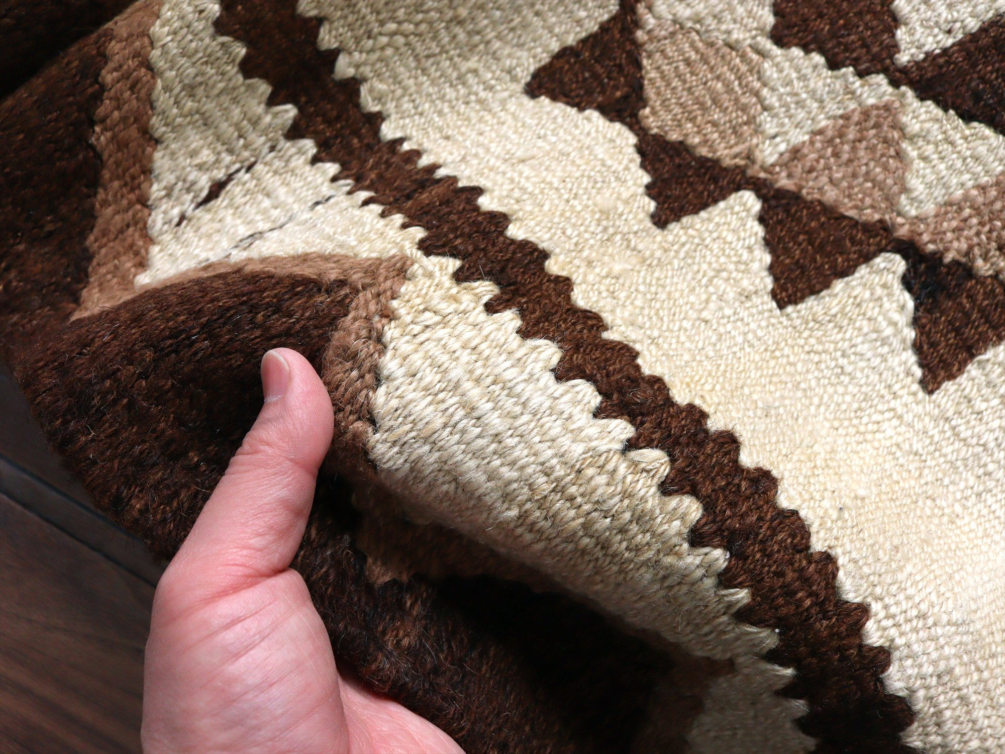 太いウールの糸を使い織られていて、ぽてっとした厚みがあり重量感があります。
