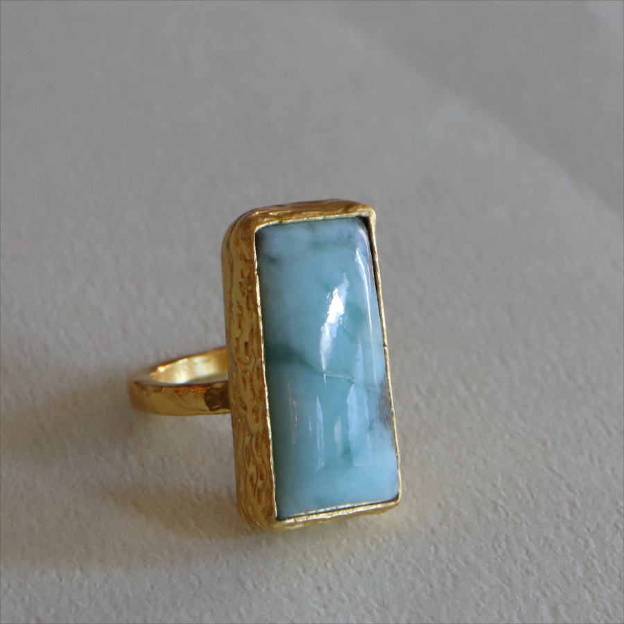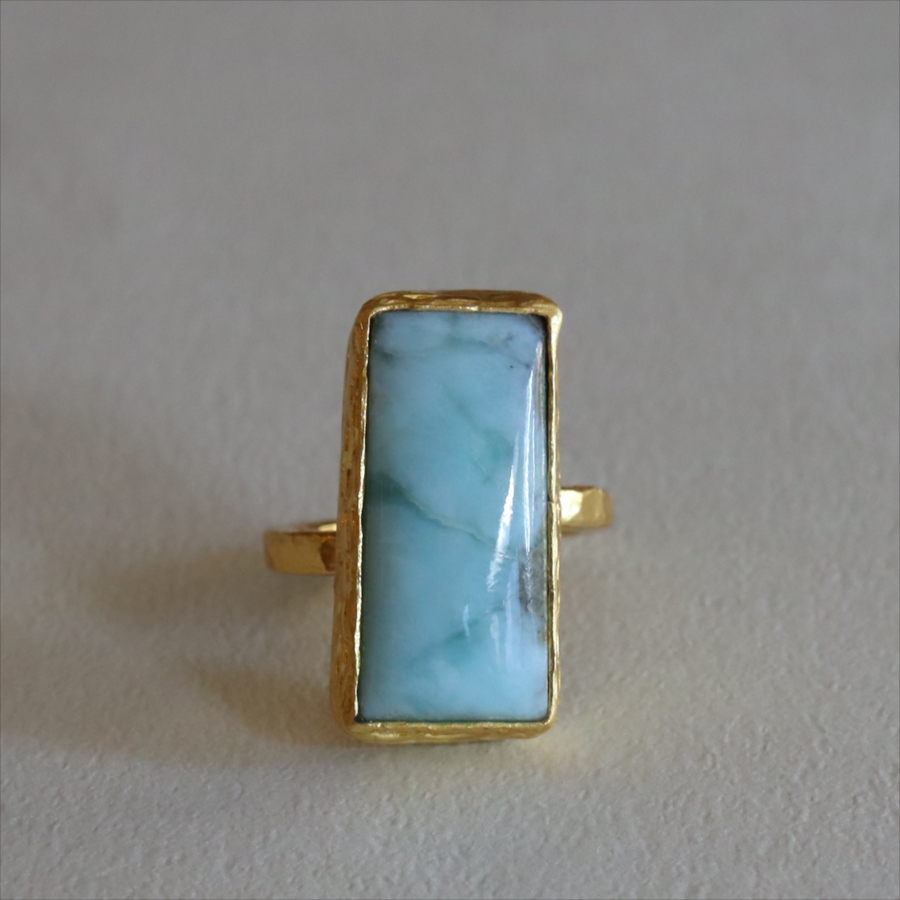 アルサメイア ラリマースクエアリング 天然石 22kゴールドプレーテッド トルコジュエリー カラーストーン