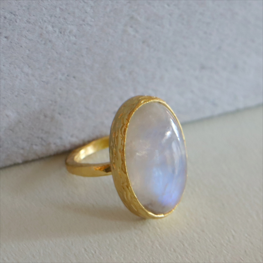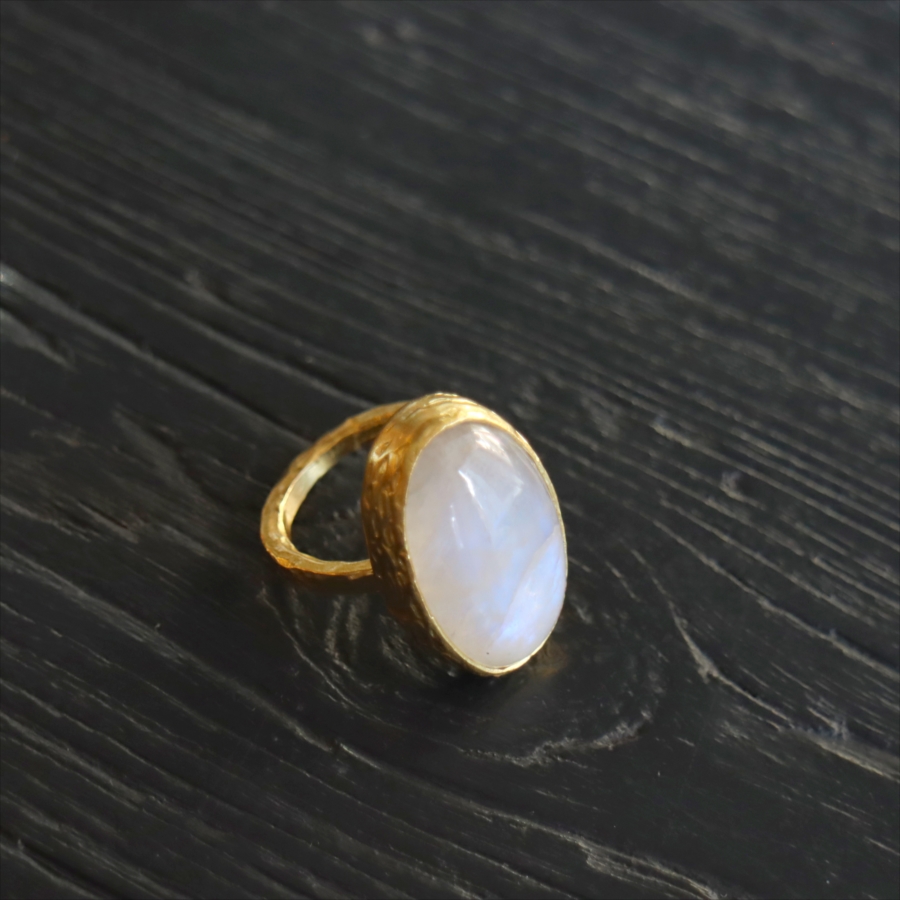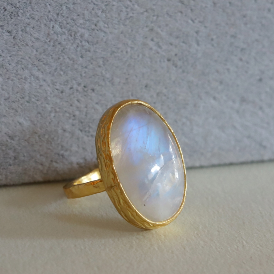5. アルサメイア レインボームーンストーン カボションリング 天然石 22kゴールドプレーテッド トルコジュエリー カラーストーン