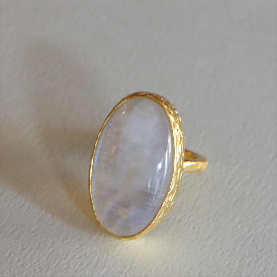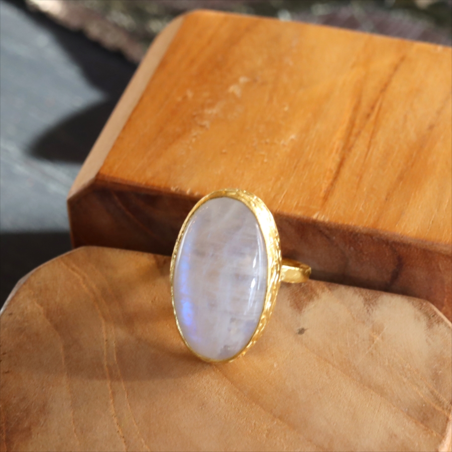 5. アルサメイア レインボームーンストーン カボションリング 天然石 22kゴールドプレーテッド トルコジュエリー カラーストーン