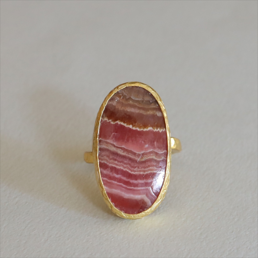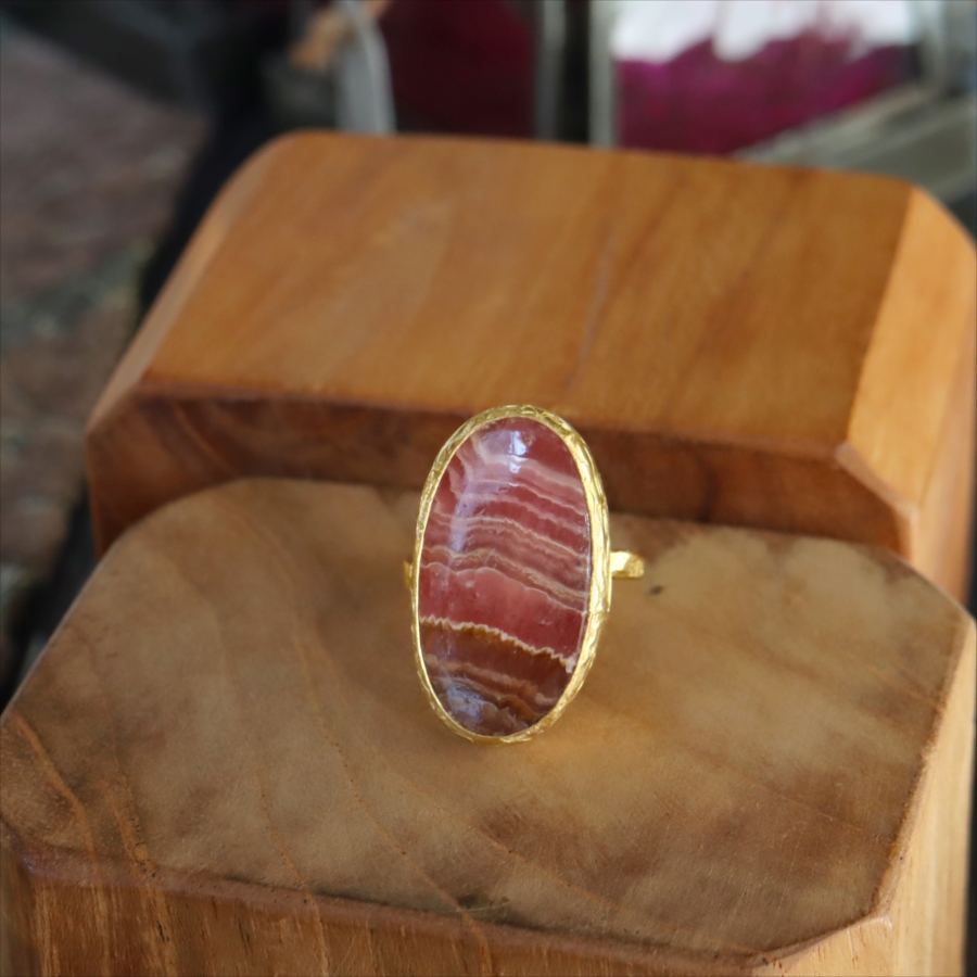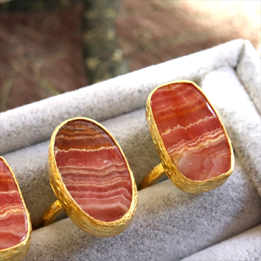 5. ロードクロサイト 大粒リング アルサメイア 天然石 22kゴールドプレーテッド トルコジュエリー カラーストーン
