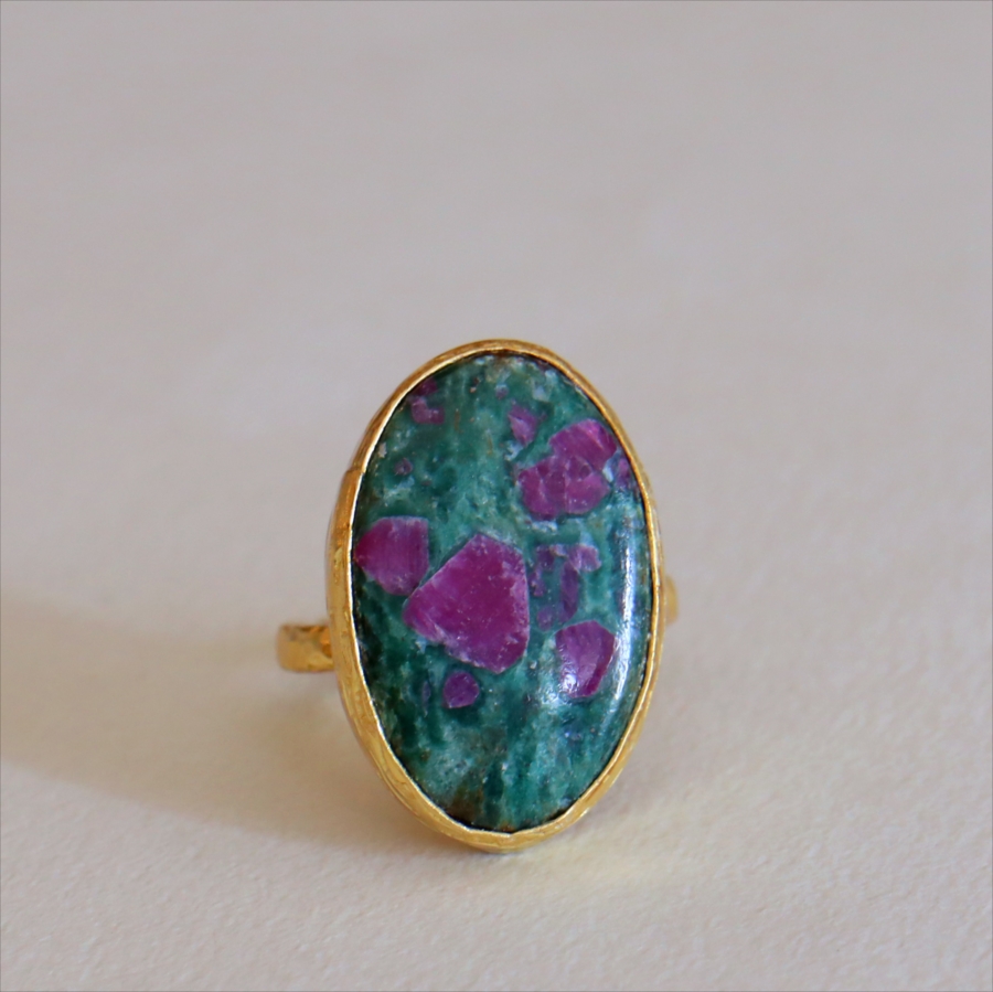 ルビーインゾイサイト リング アルサメイア 天然石 22kゴールドプレーテッド トルコジュエリー カラーストーン