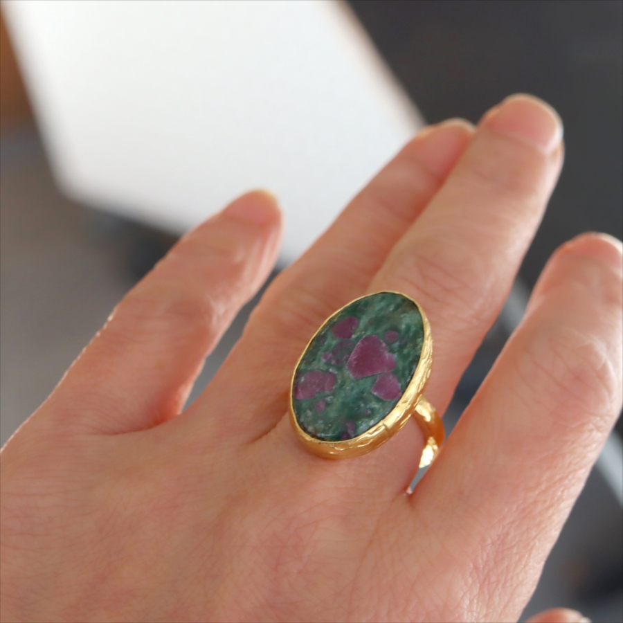 5. ルビーインゾイサイト リング アルサメイア 天然石 22kゴールドプレーテッド トルコジュエリー カラーストーン