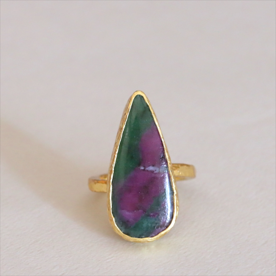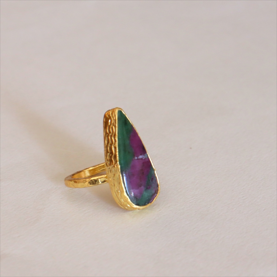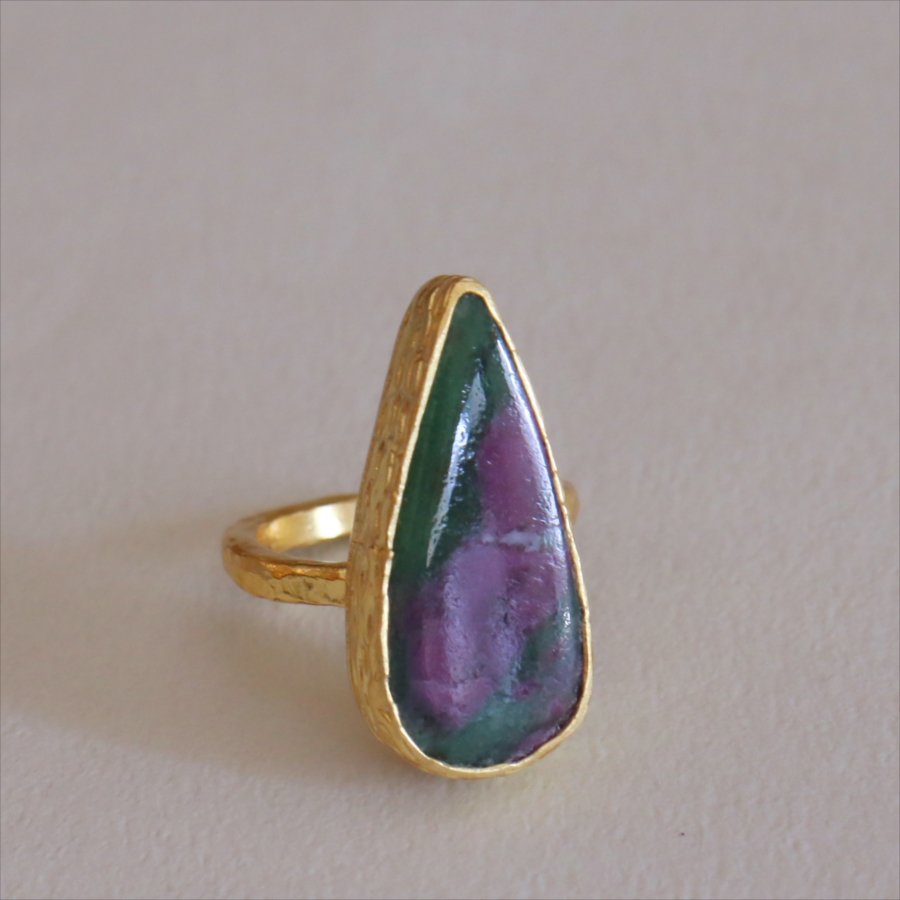 ルビーインゾイサイト リング アルサメイア 天然石 22kゴールドプレーテッド トルコジュエリー カラーストーン
