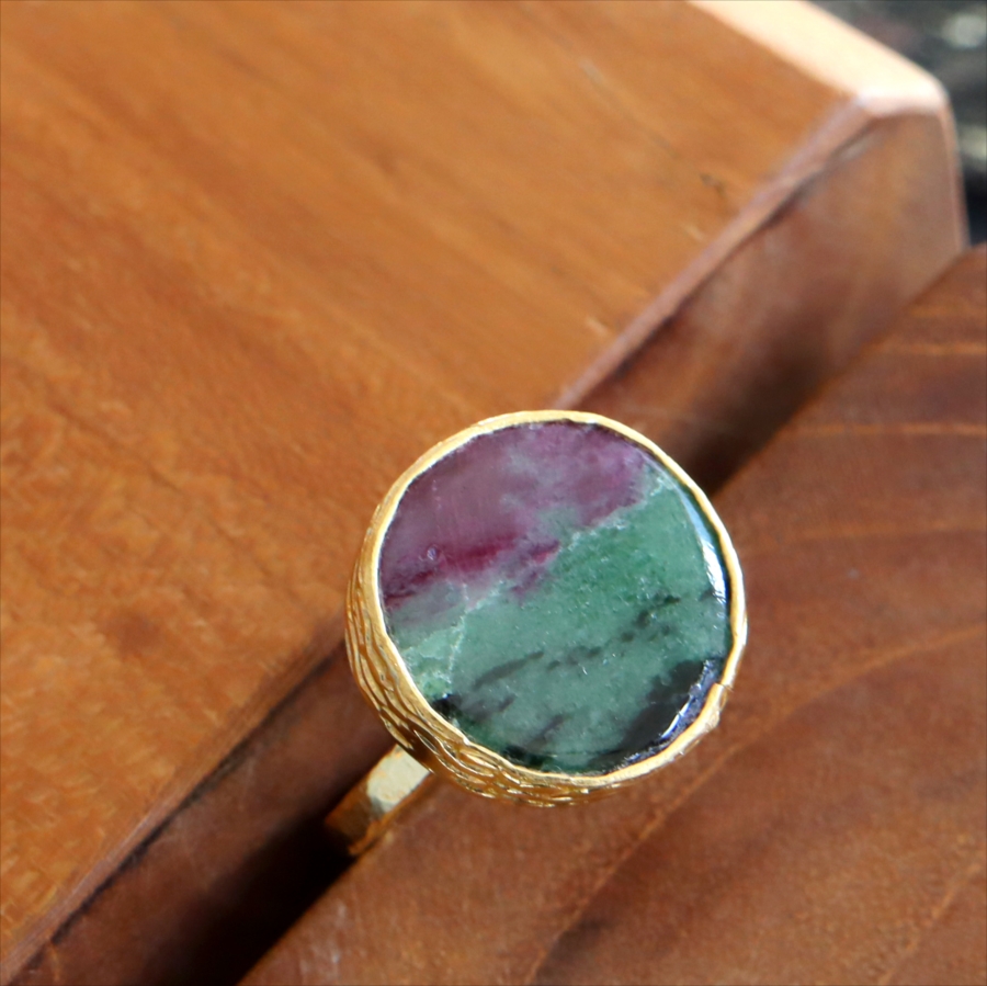 ルビーインゾイサイト リング アルサメイア 天然石 22kゴールドプレーテッド トルコジュエリー カラーストーン