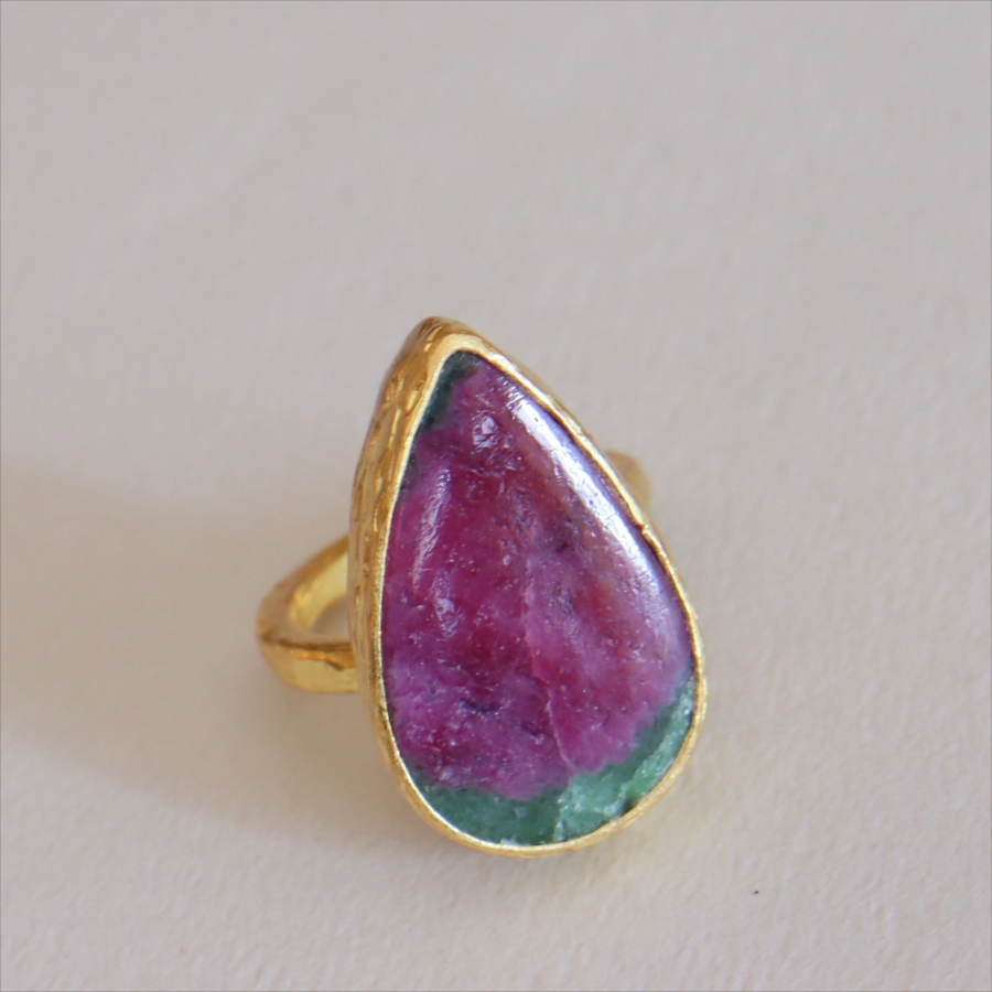 ルビーインゾイサイト リング アルサメイア 天然石 22kゴールドプレーテッド トルコジュエリー カラーストーン