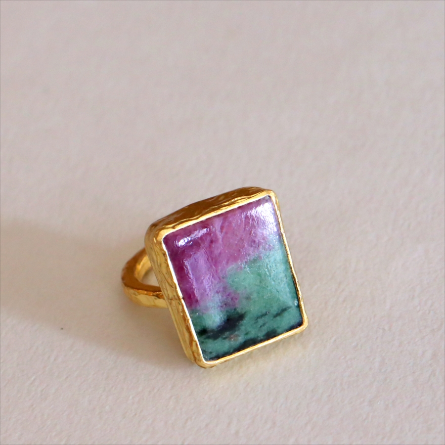 ルビーインゾイサイト リング アルサメイア 天然石 22kゴールドプレーテッド トルコジュエリー カラーストーン