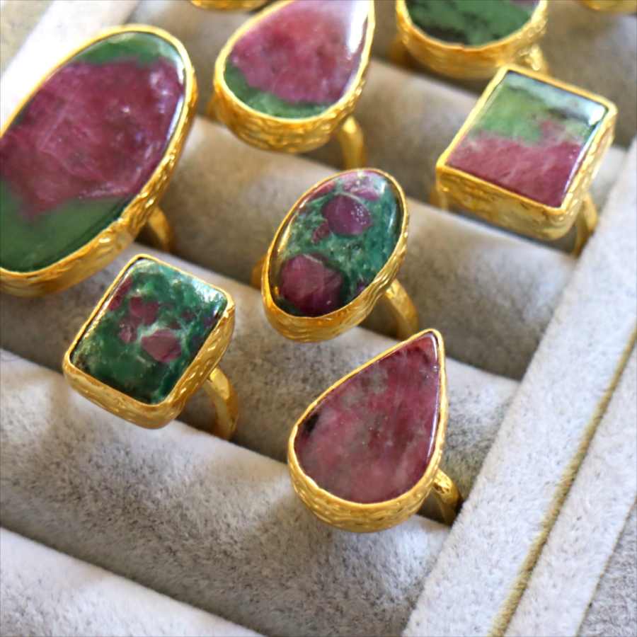 5. ルビーインゾイサイト リング アルサメイア 天然石 22kゴールドプレーテッド トルコジュエリー カラーストーン