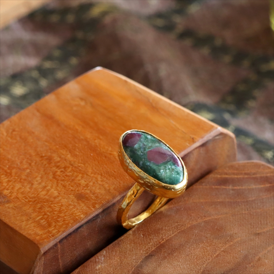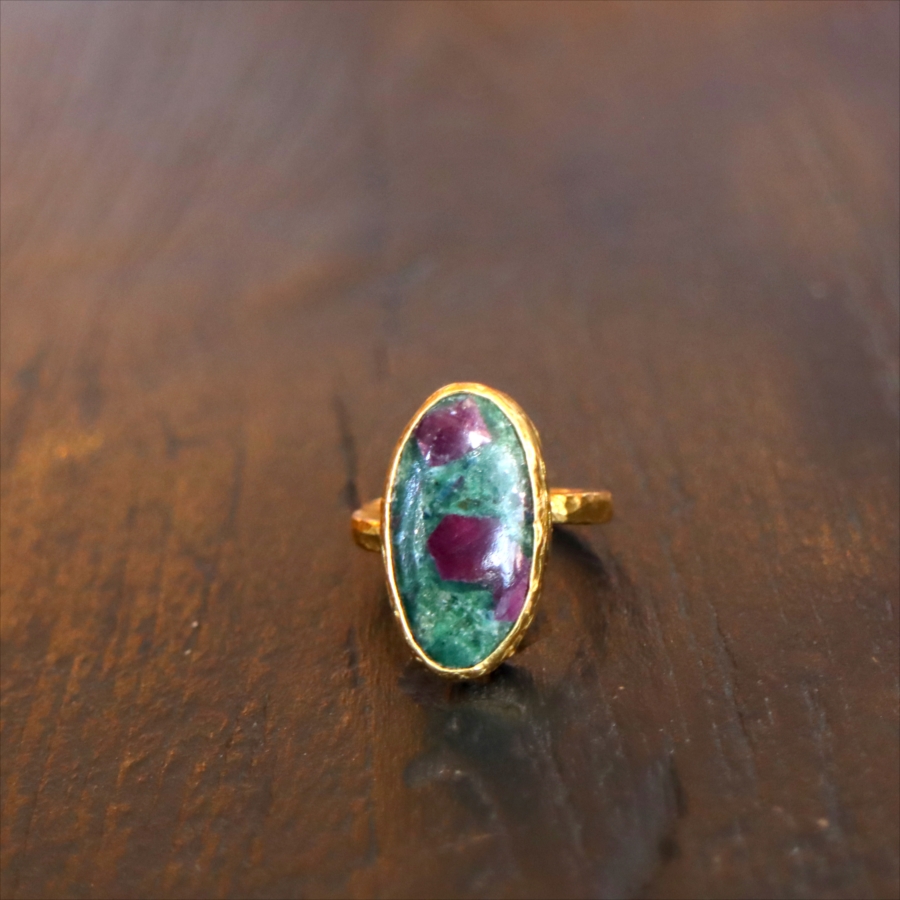 ルビーインゾイサイト リング アルサメイア 天然石 22kゴールドプレーテッド トルコジュエリー カラーストーン