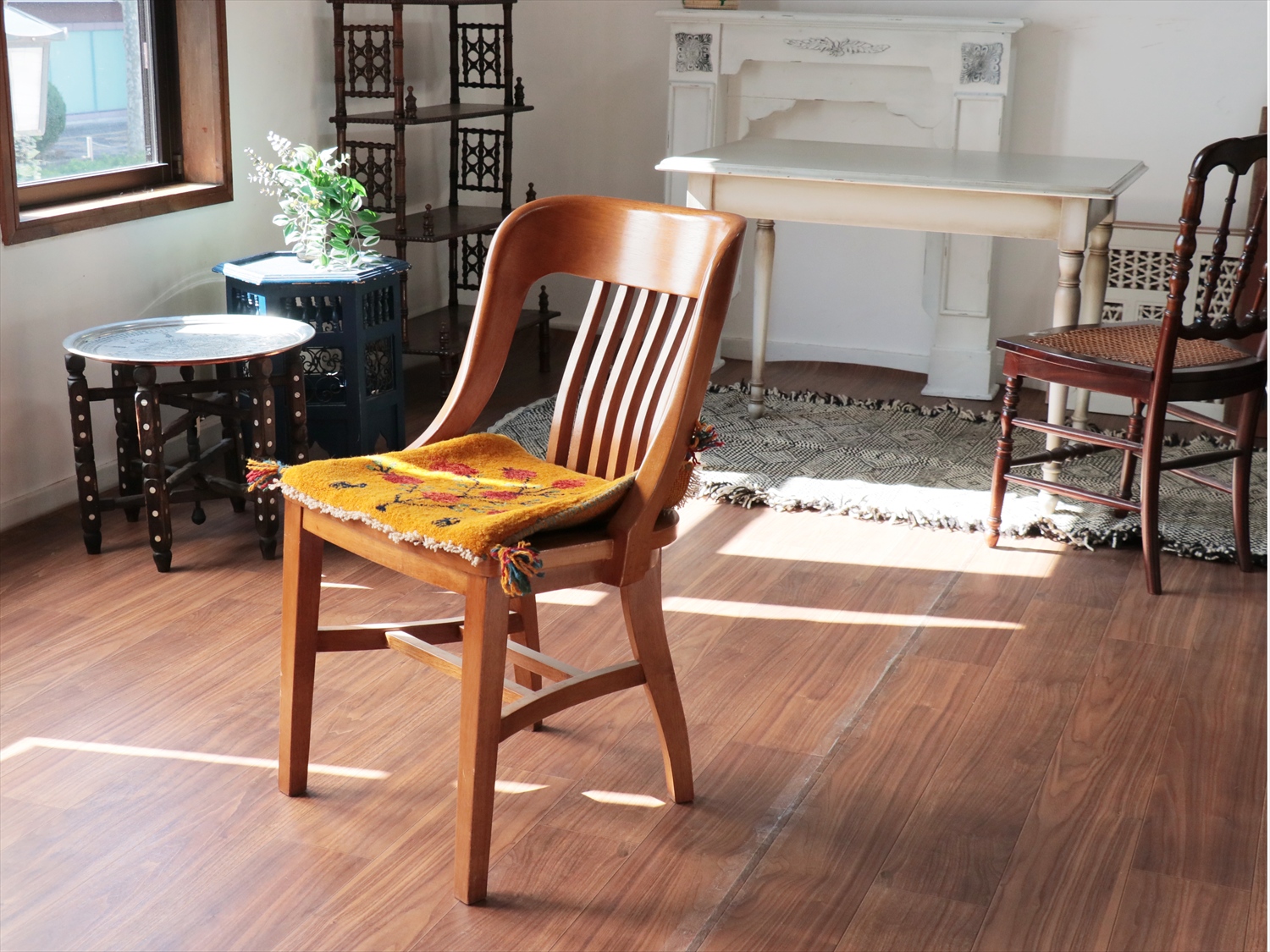 - ギャッベ イラン産手織り 座布団サイズ 39x43cm イエロー ザクロの実