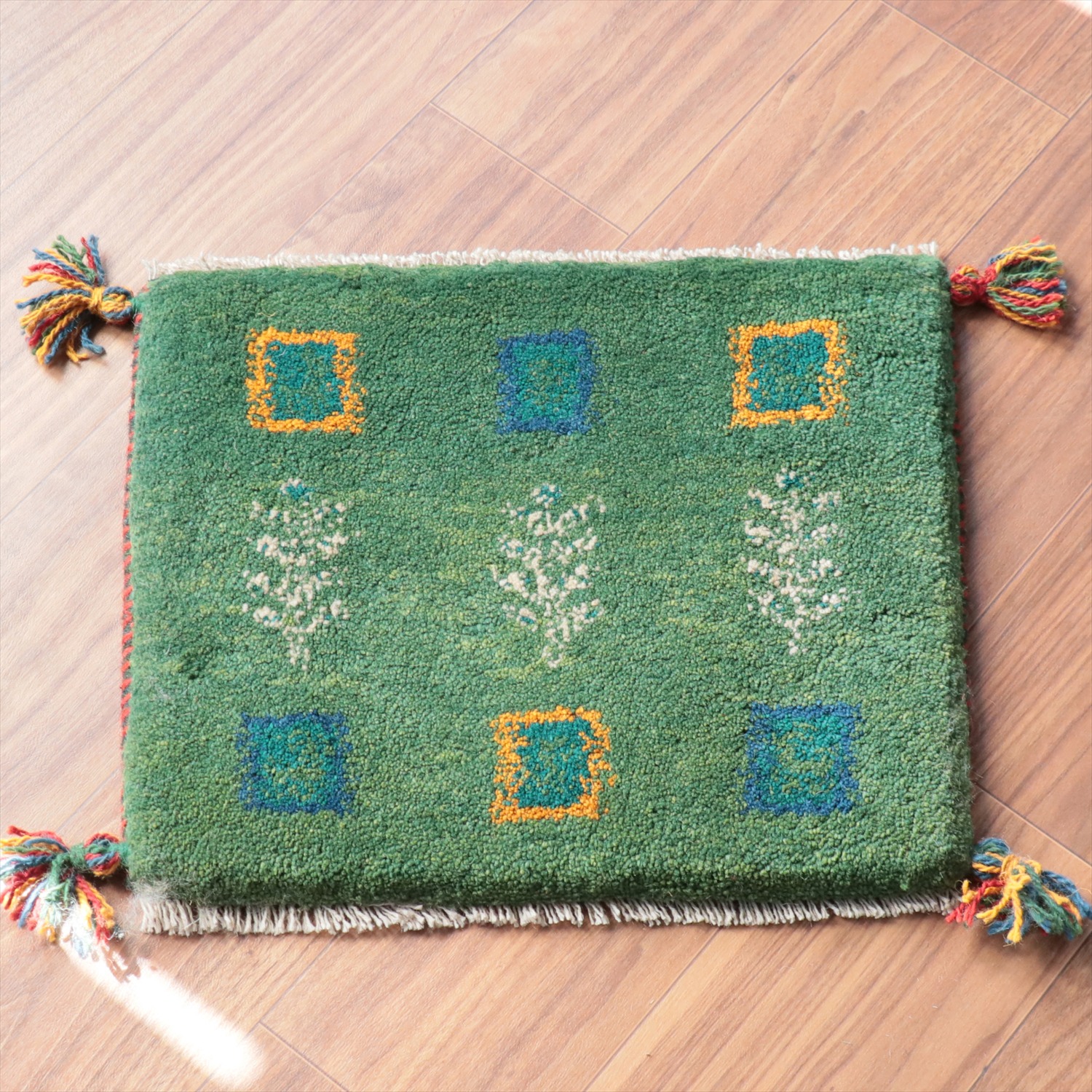 - ギャッベ イラン産手織り 座布団サイズ 39x46cm グリーン