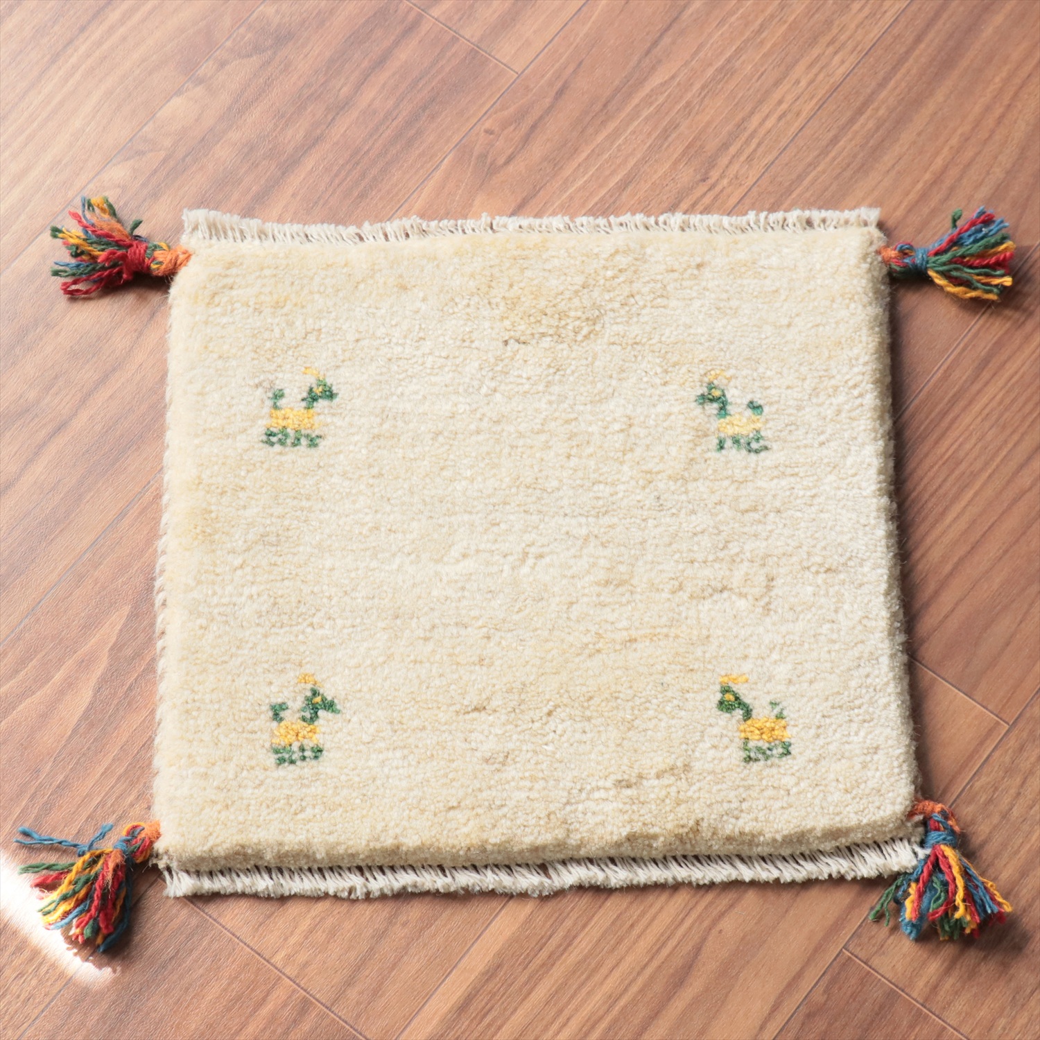 ギャッベ イラン産手織り 座布団サイズ 37x40cm ナチュラルアイボリー 無地 シンプル