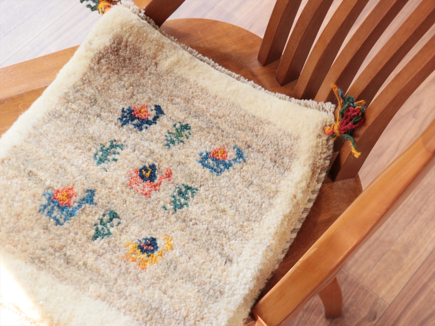 ギャッベ イラン産手織り 座布団サイズ 41x38cm アイボリー ベージュブラウン ラクダ