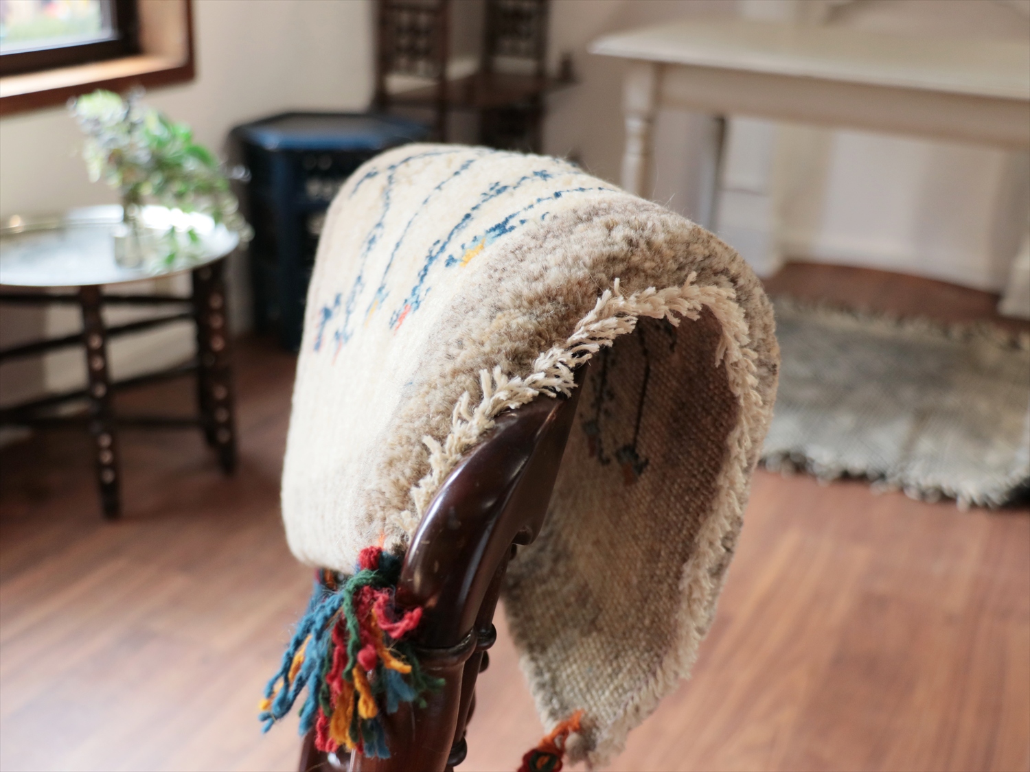 【手織りギャッベ】イラン南部に暮らす遊牧民カシュカイ族の織る毛足の長い絨毯。たくさんの時間をかけて、縦糸にひとつひとつ毛足を結びつけて織り上げていきます。ウールを紡ぐところから、全体を洗う作業、毛足の刈り込みや端の処理まで、全て手作業で行われています。