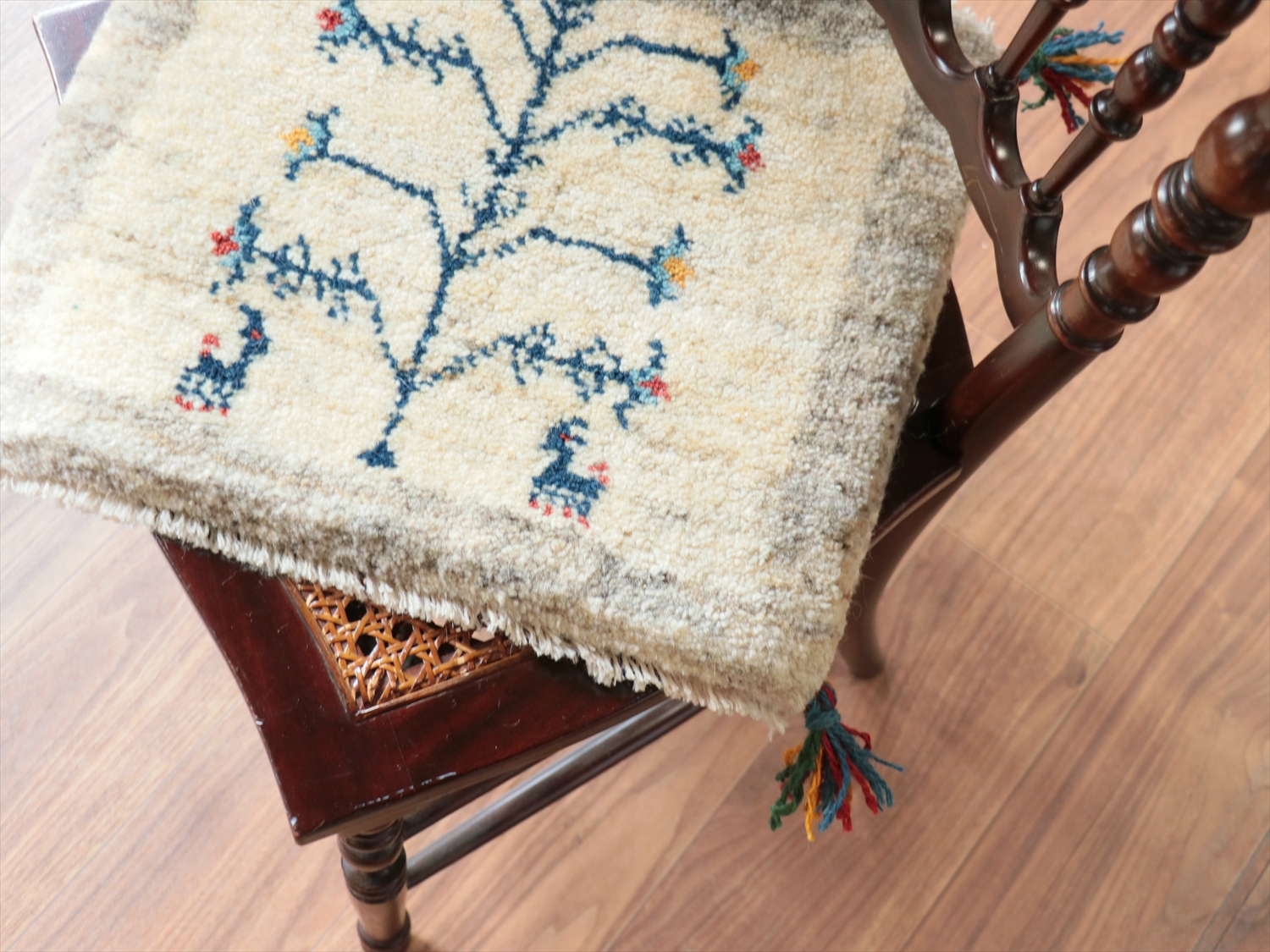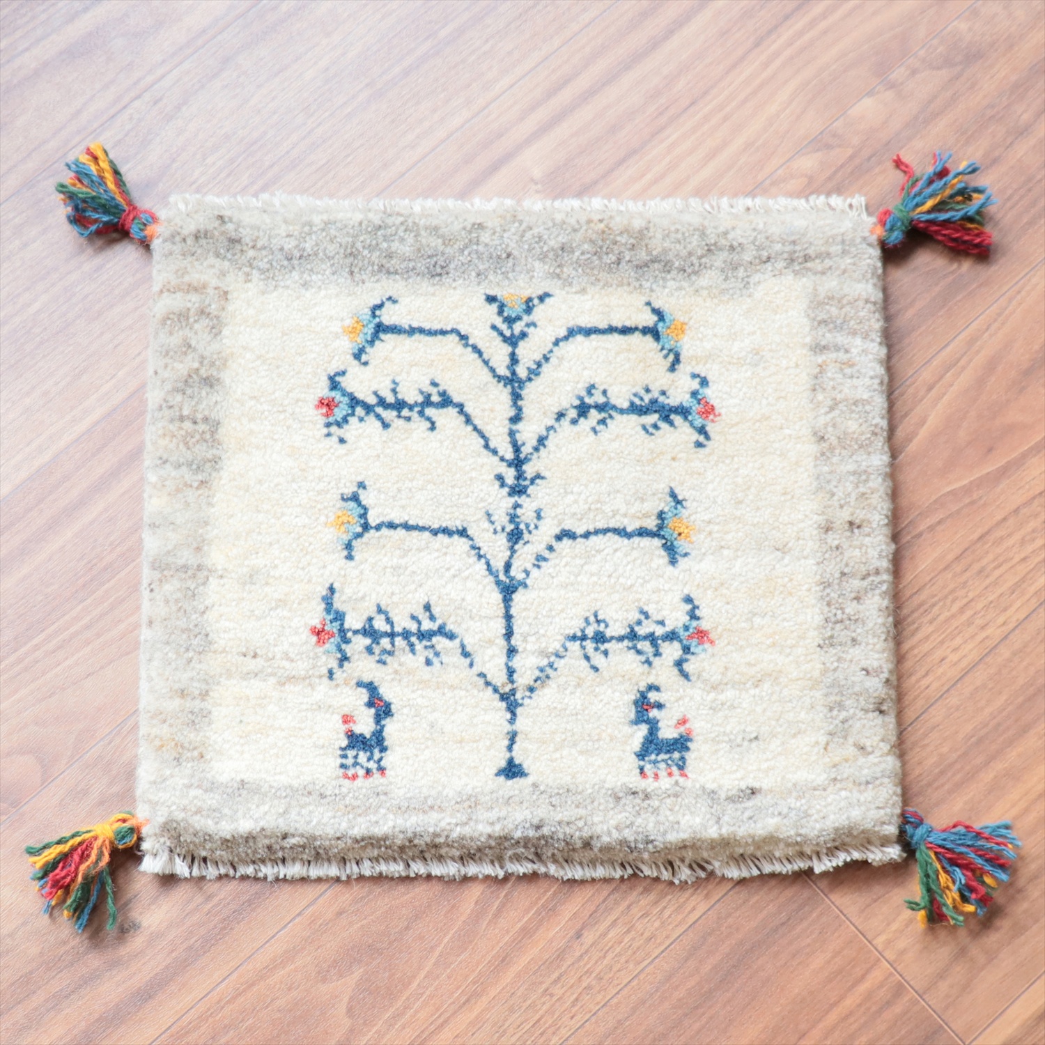 ギャッベ イラン産手織り 座布団サイズ 40x44cm ナチュラルアイボリー グレー