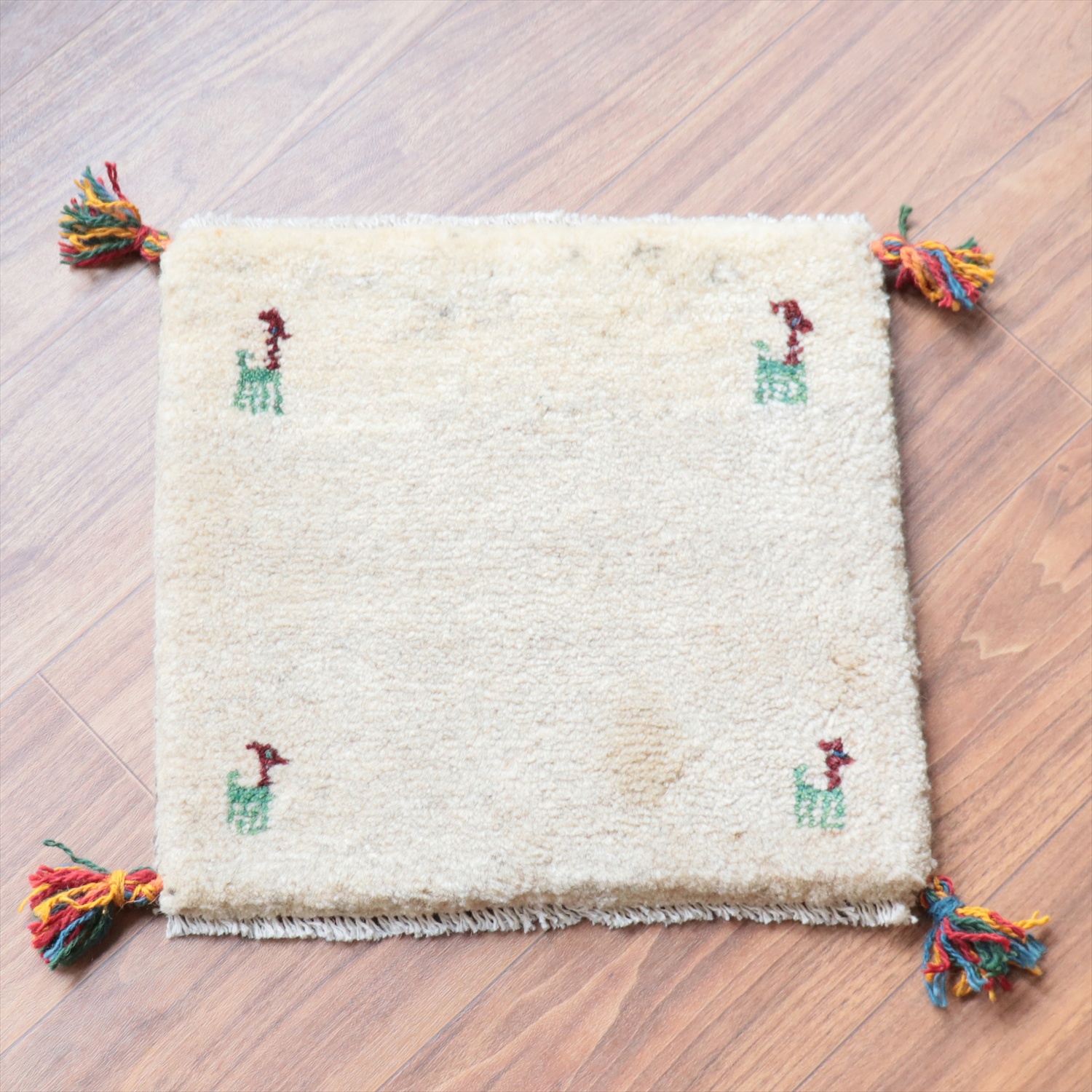 ギャッベ イラン産手織り 座布団サイズ 42x43cm ナチュラルアイボリー 無地 シンプル
